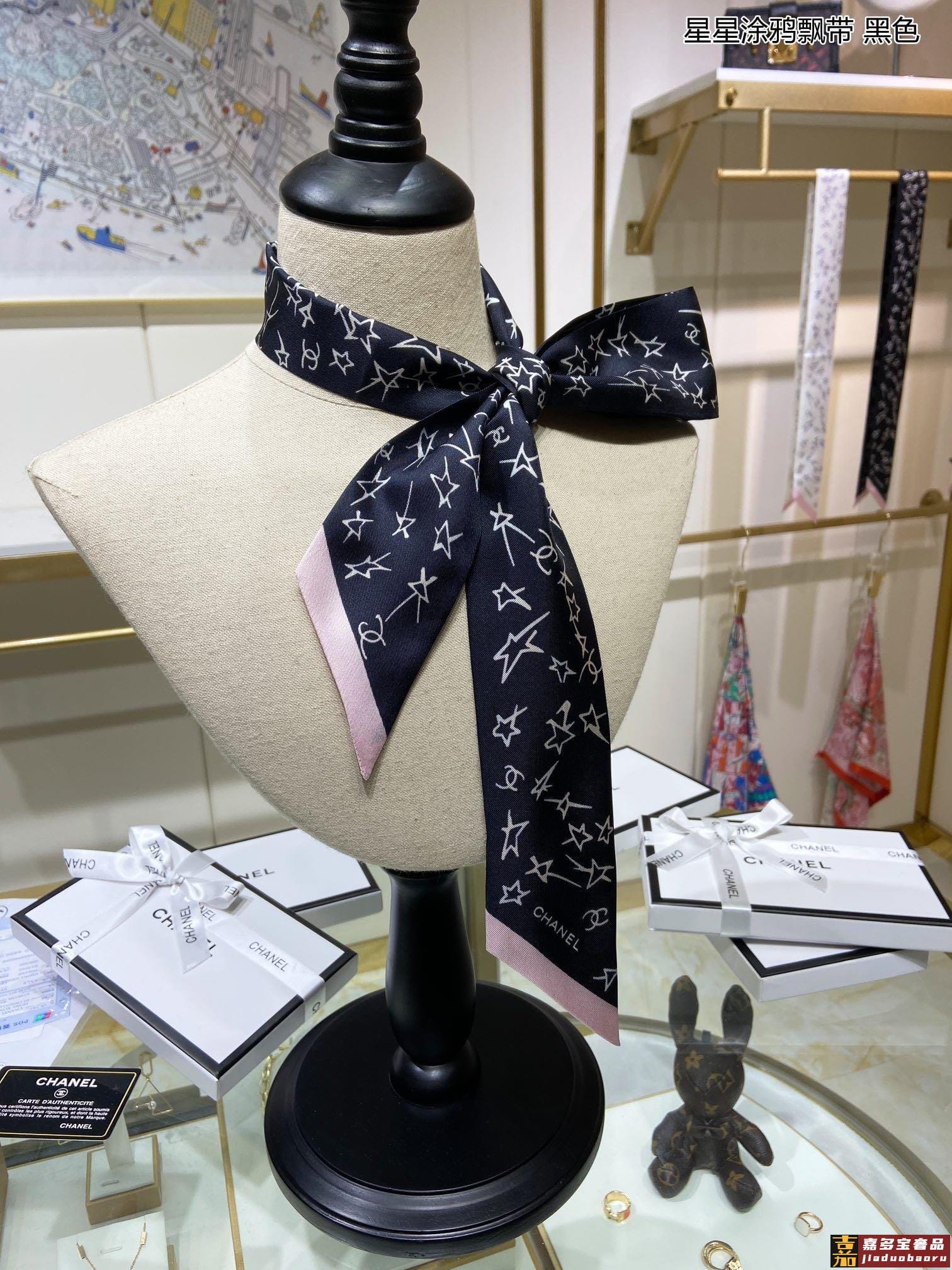 超好看香奈儿丝巾双层真丝多种用途绑包包上当发带或者小领巾都相