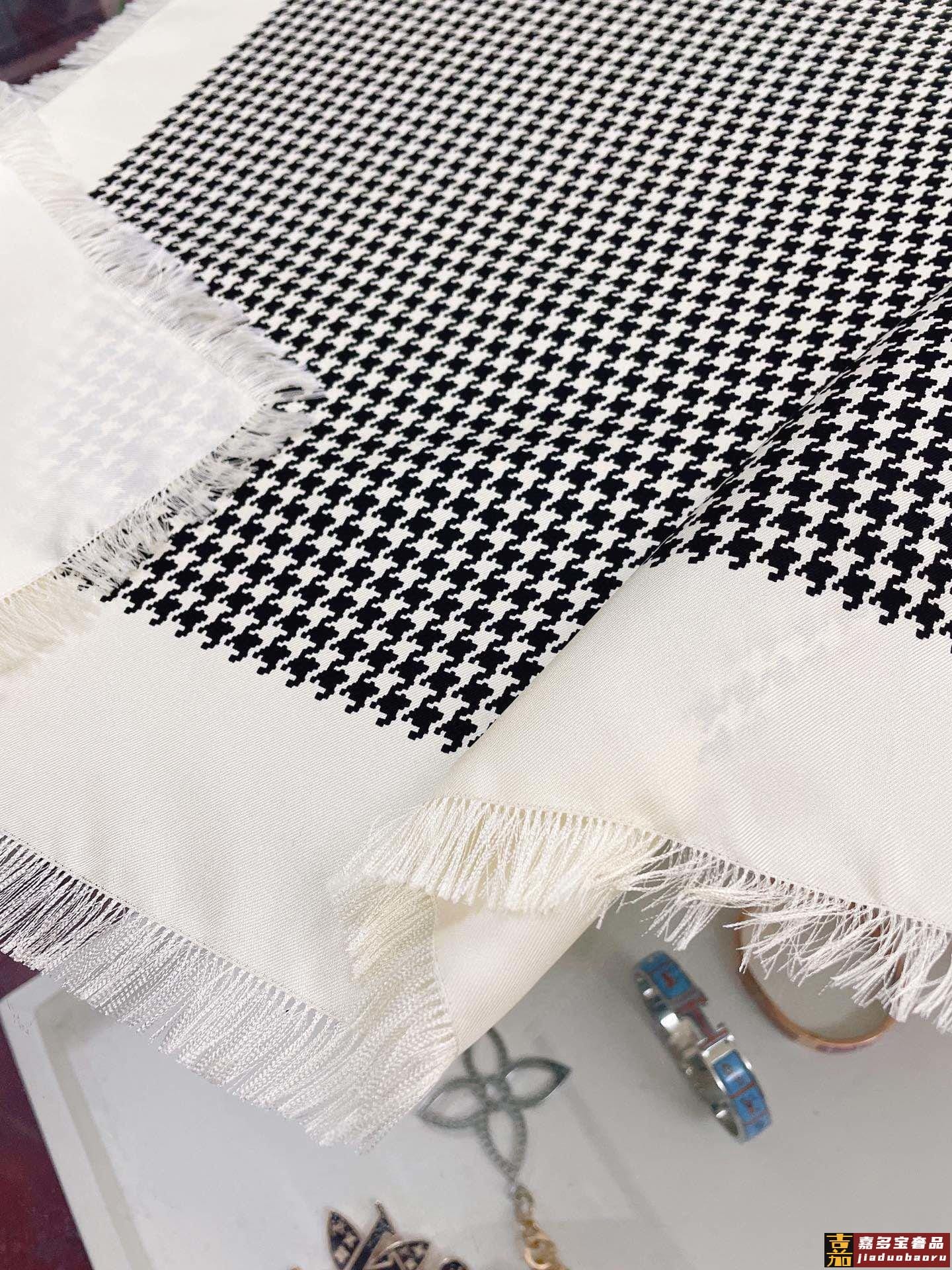 新家专柜同步上新千鸟格纹锁边真丝方巾卖的超爆的上身才会知道她