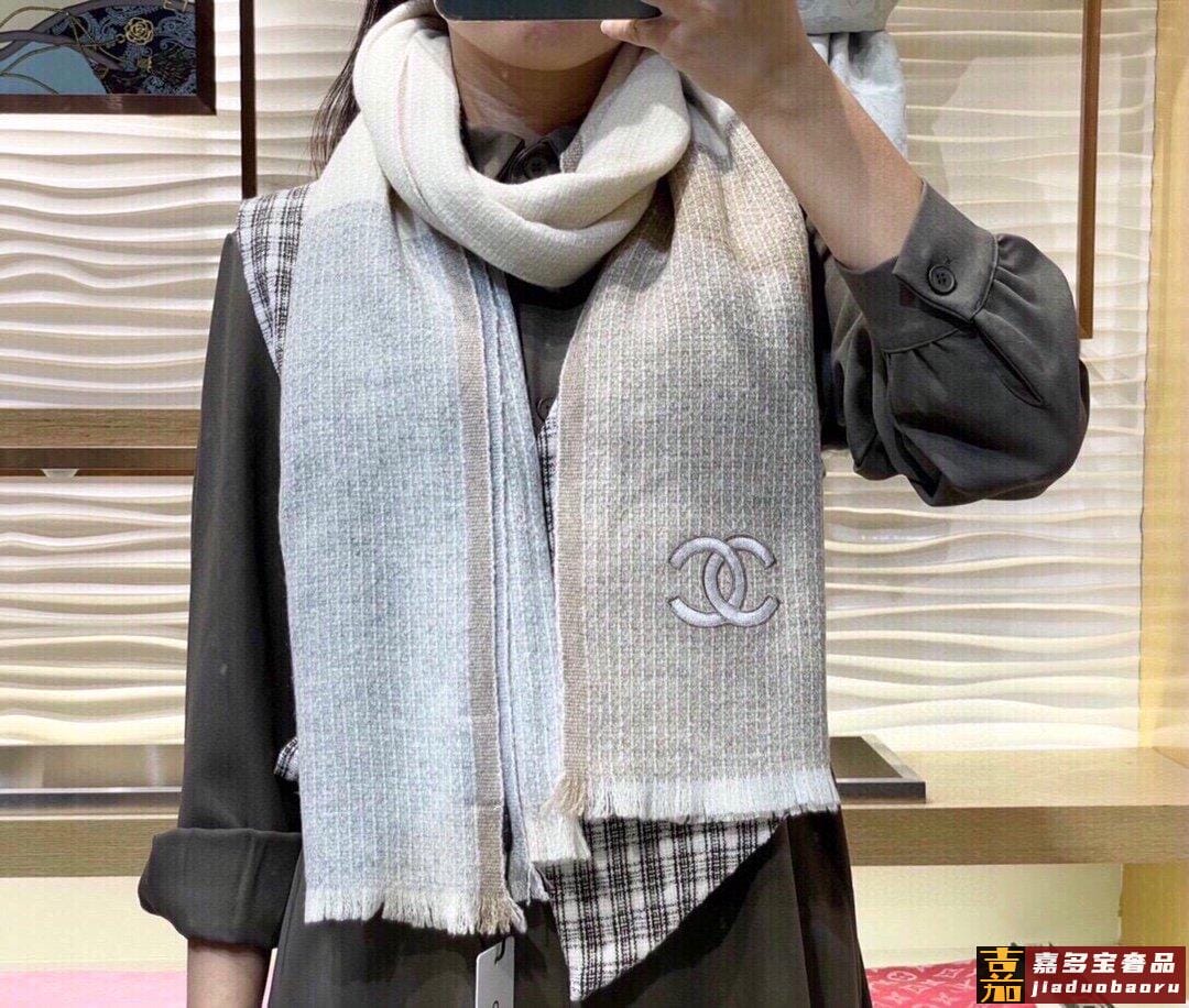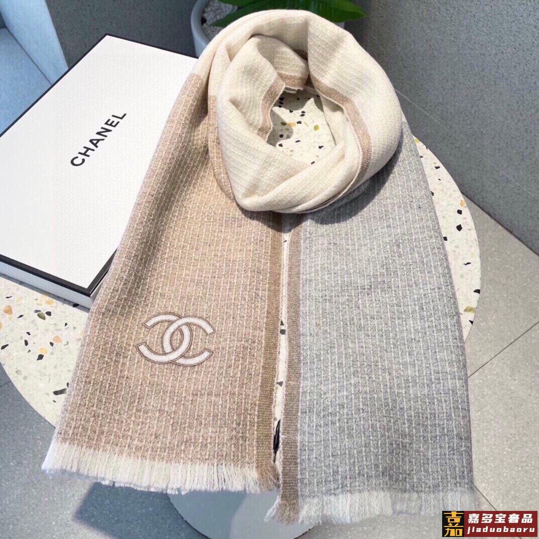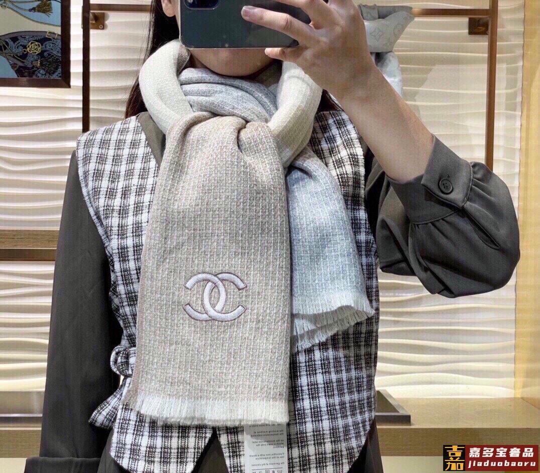 推荐香奈儿专柜最新款双色羊绒围巾爆款哦实物真心美披肩配以精美