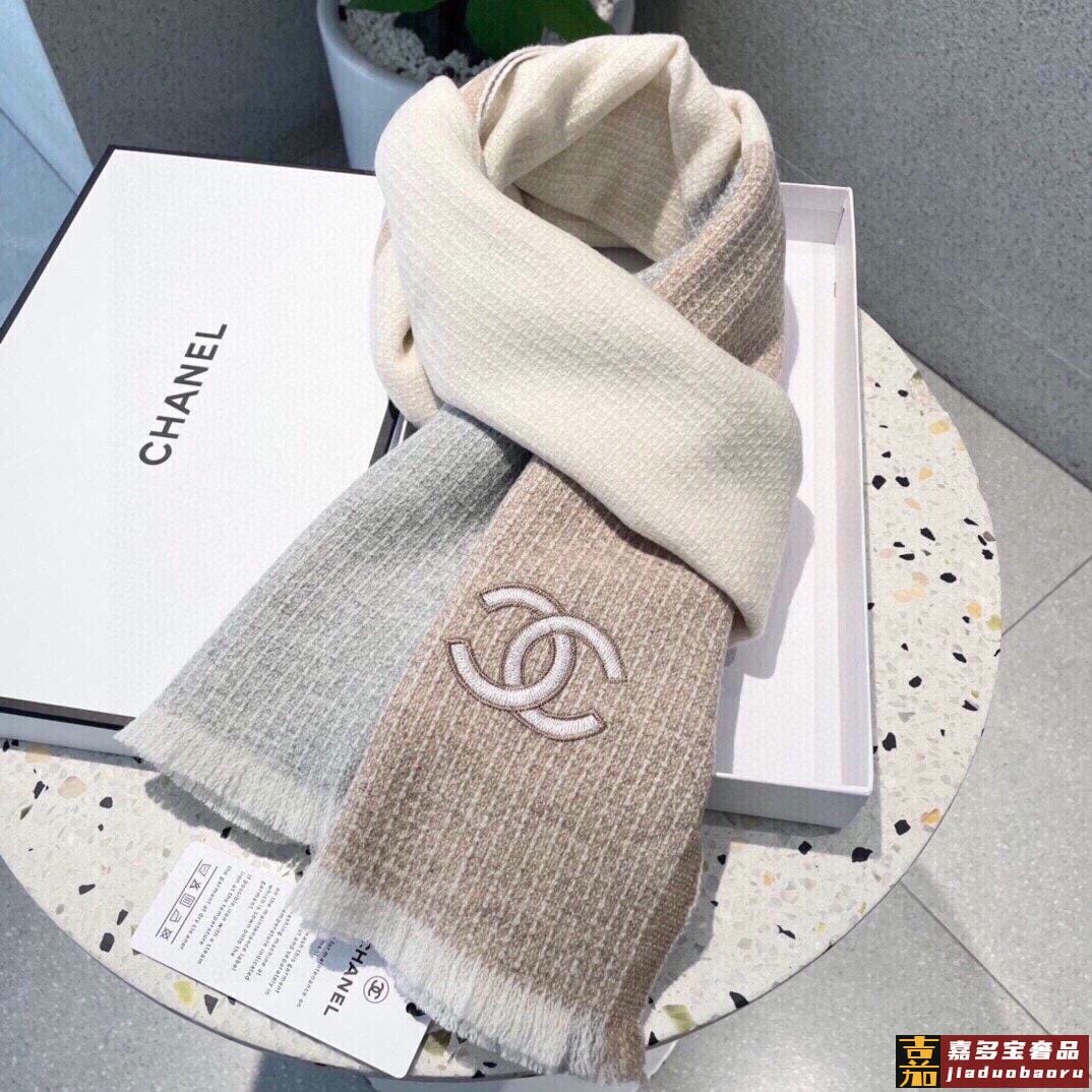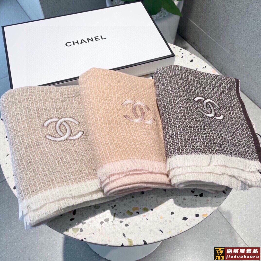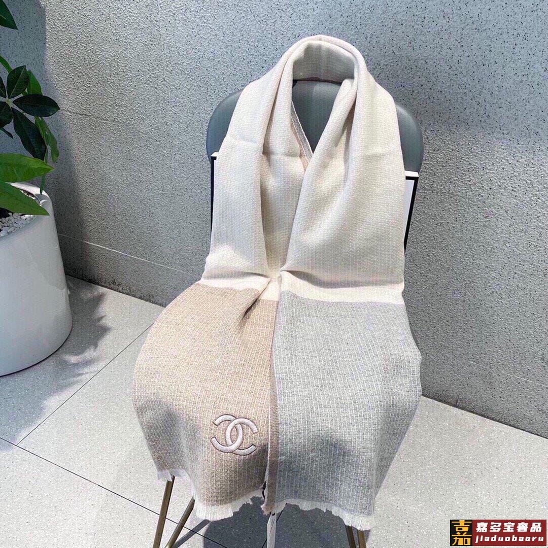 推荐香奈儿专柜最新款双色羊绒围巾爆款哦实物真心美披肩配以精美