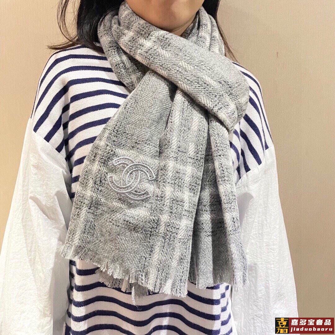 推荐香奈儿专柜最新款双色羊绒围巾爆款哦实物真心美披肩配以精美