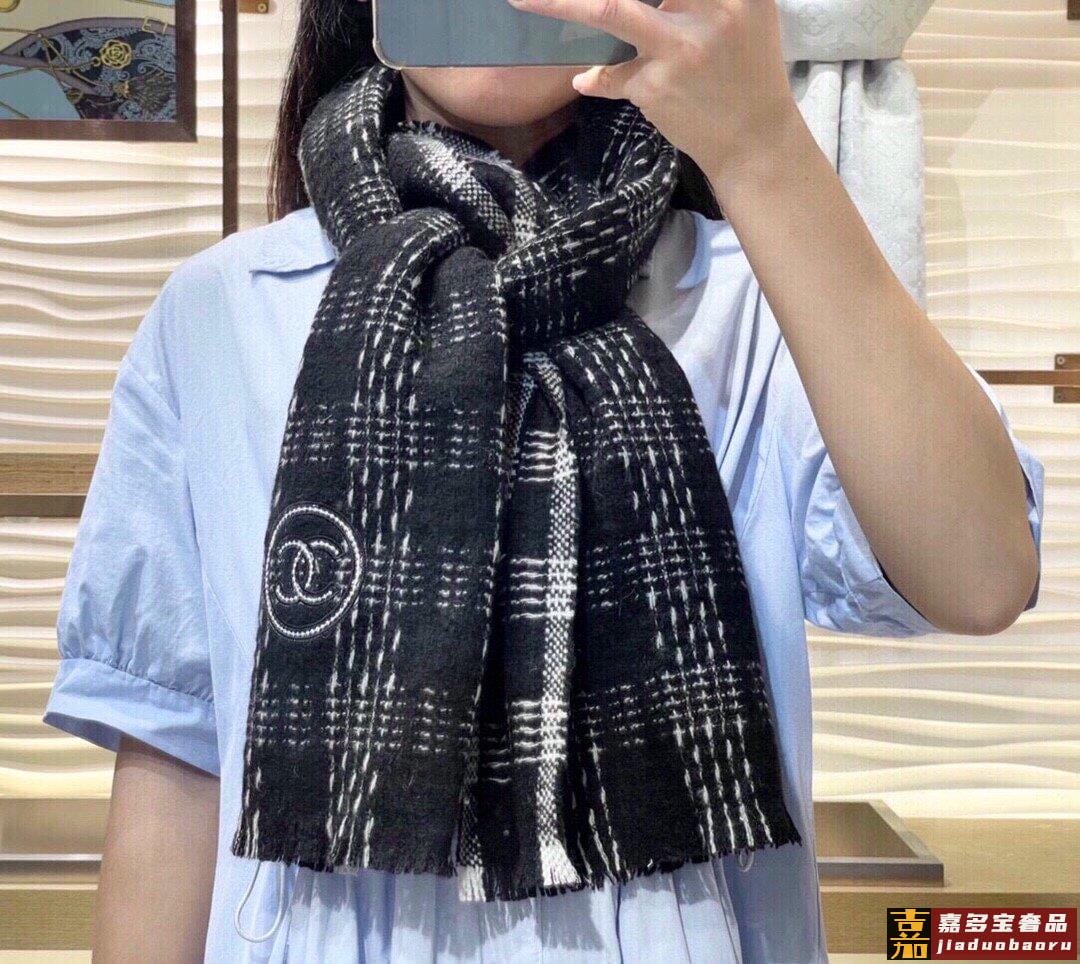 新款这款丝巾从标志性的精品店地址汲取灵感黑色和白色千鸟格纹图