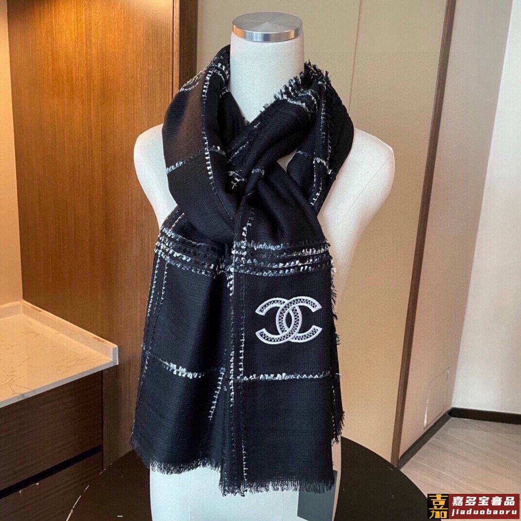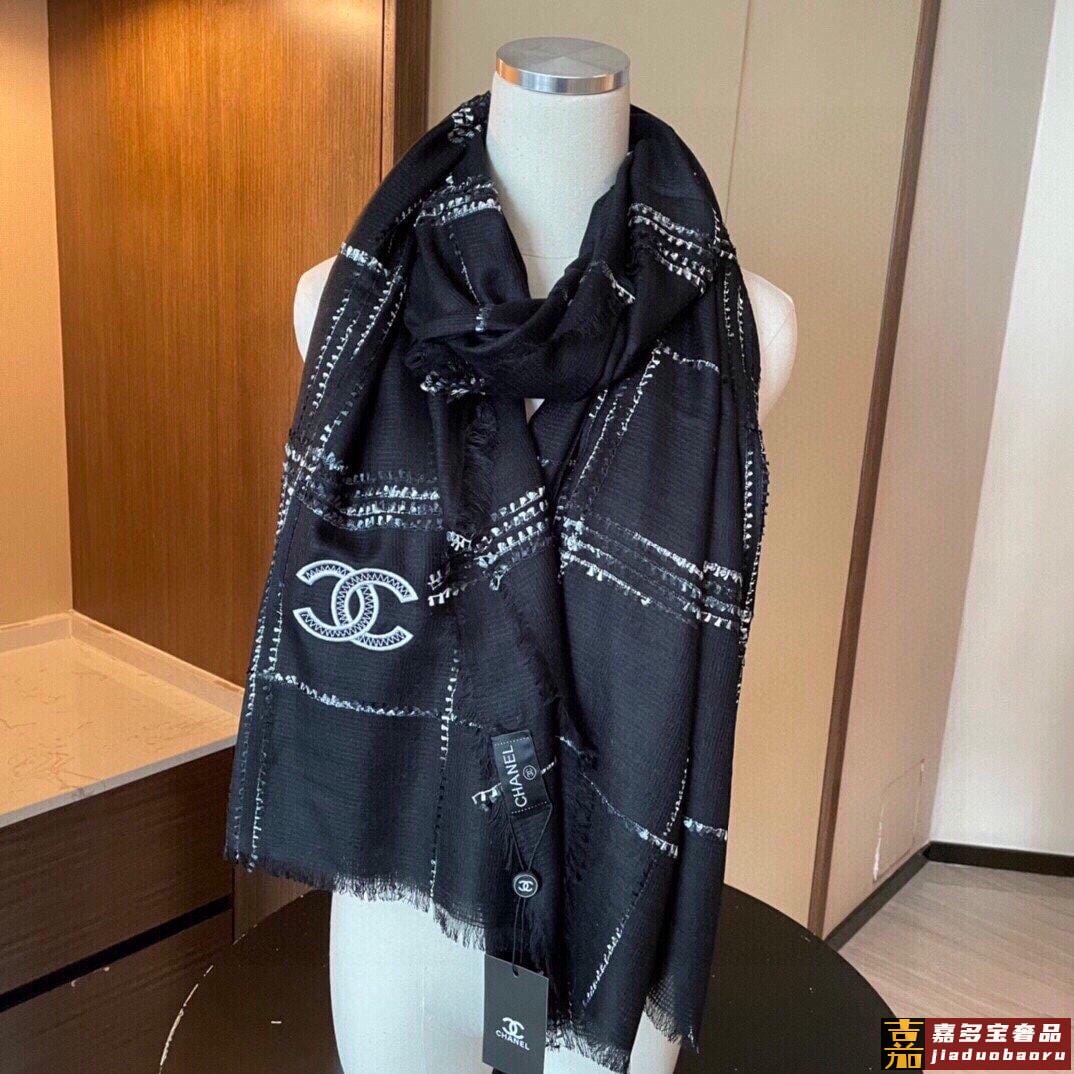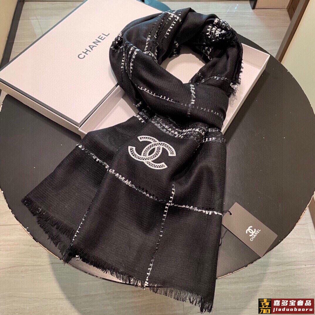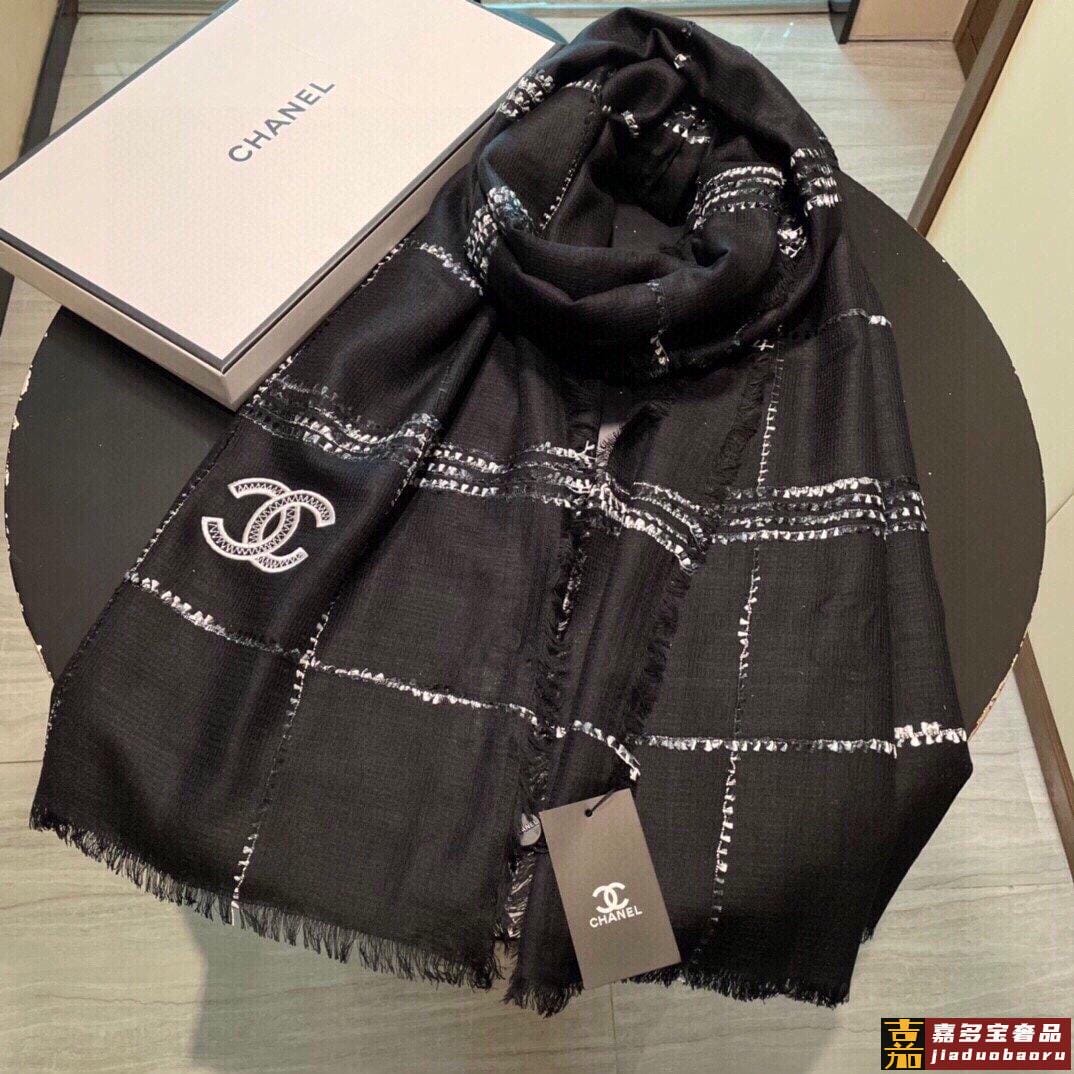 香奈儿最新羊围巾这款得值收藏面客料供山羊绒配色银金属丝线完全