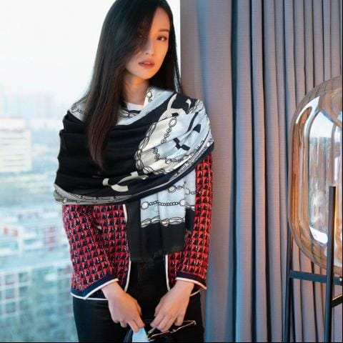 香奈儿最新羊围巾这款得值收藏面客料供山羊绒配色银金属丝线完全