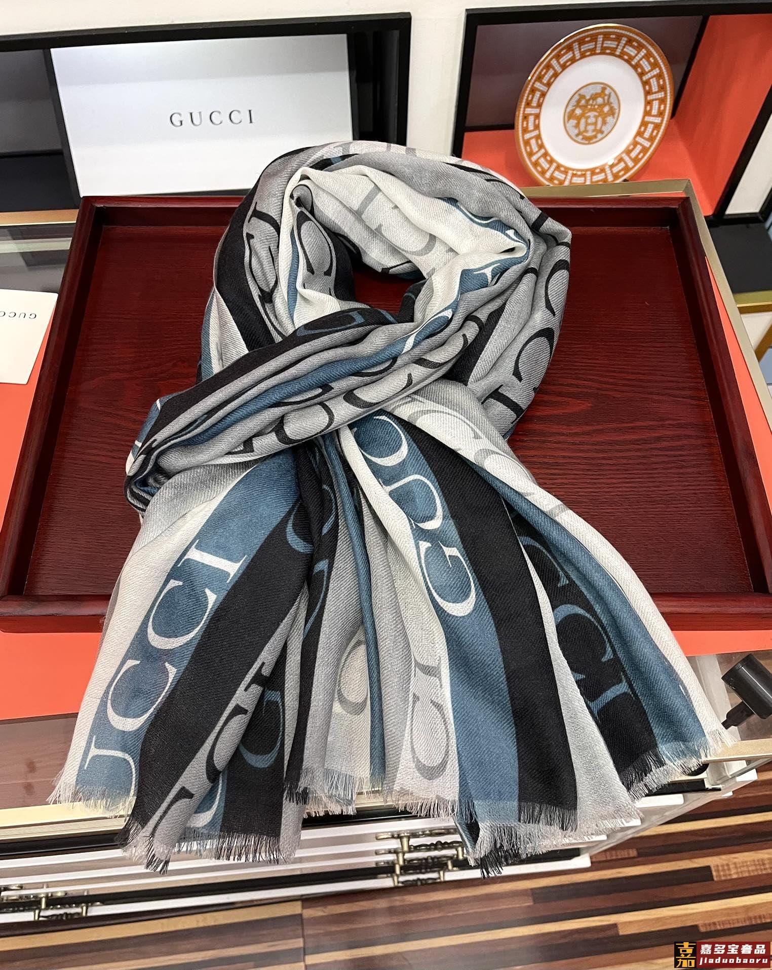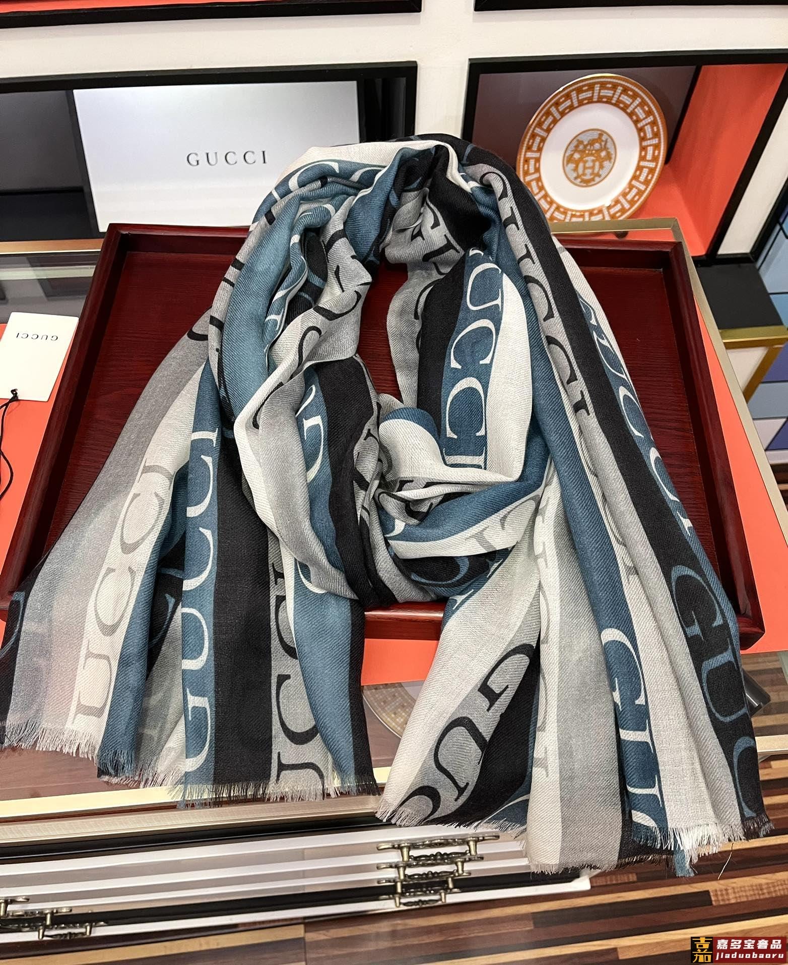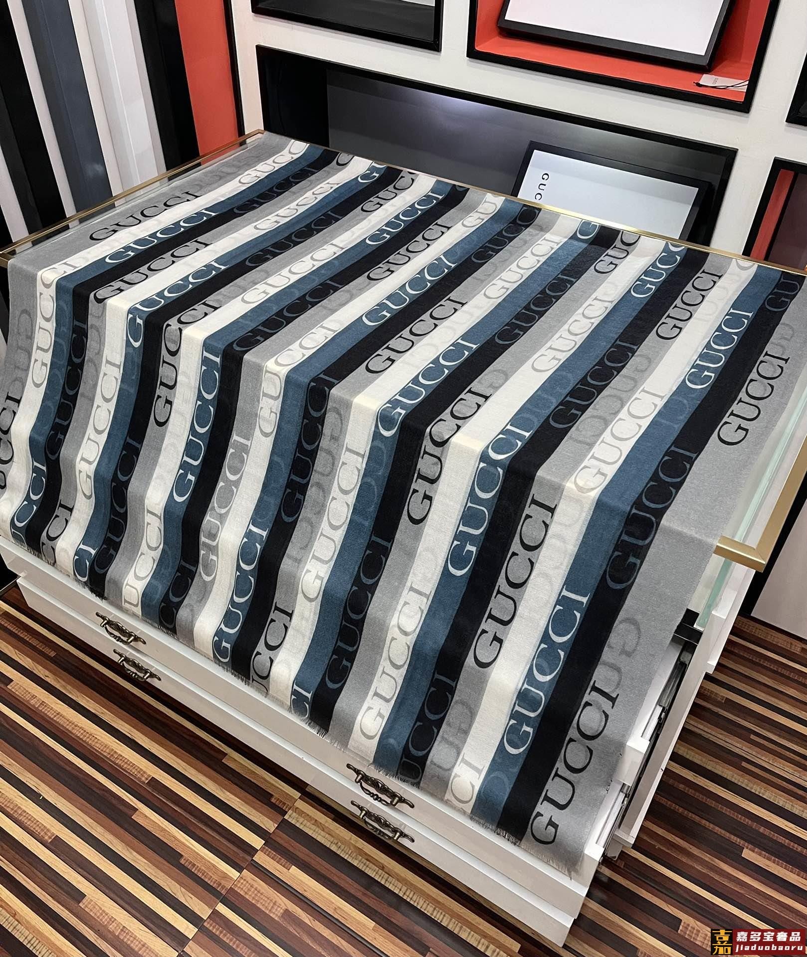 古驰蜜蜂人字纹彩条羊毛围巾今年的新款采用的是人字纹加彩条的设