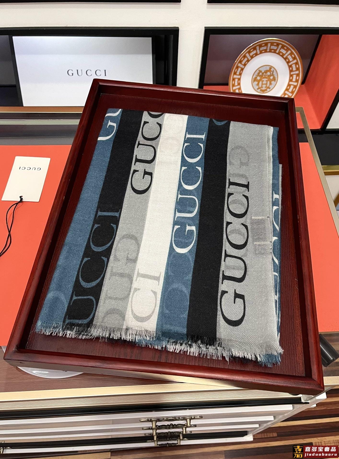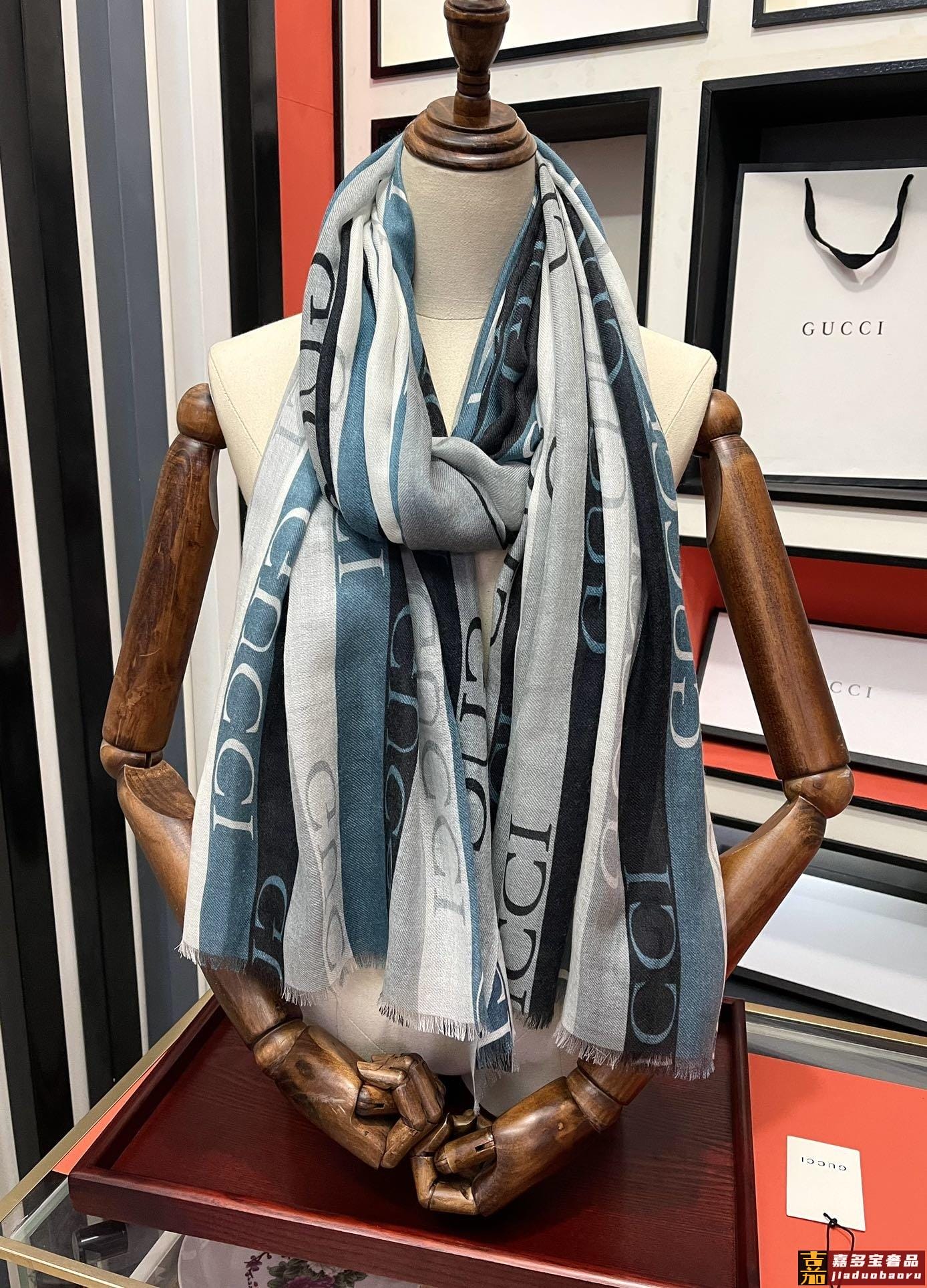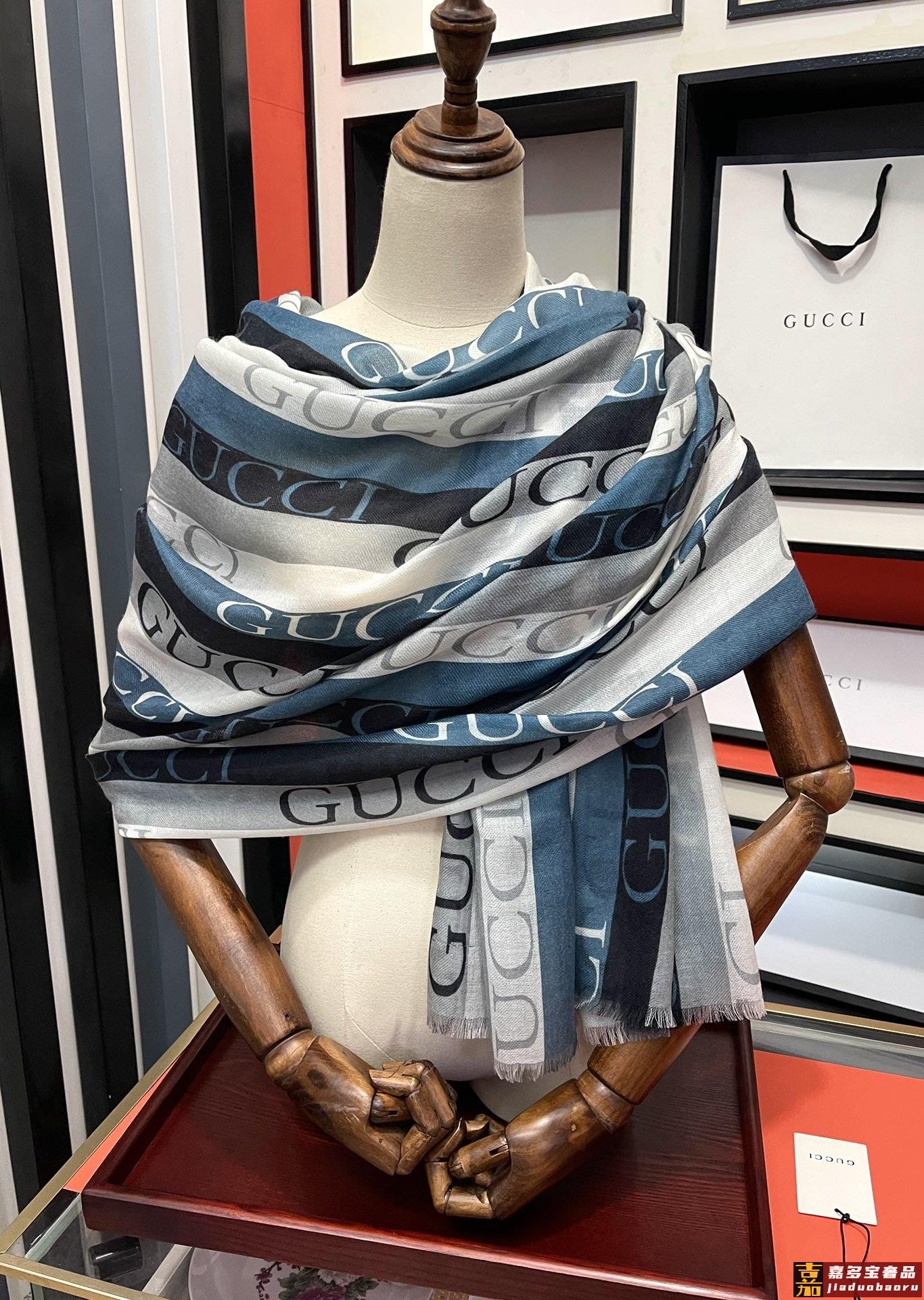 古驰蜜蜂人字纹彩条羊毛围巾今年的新款采用的是人字纹加彩条的设