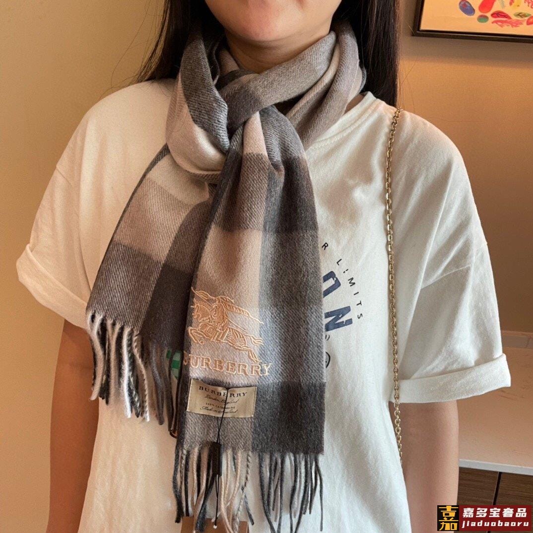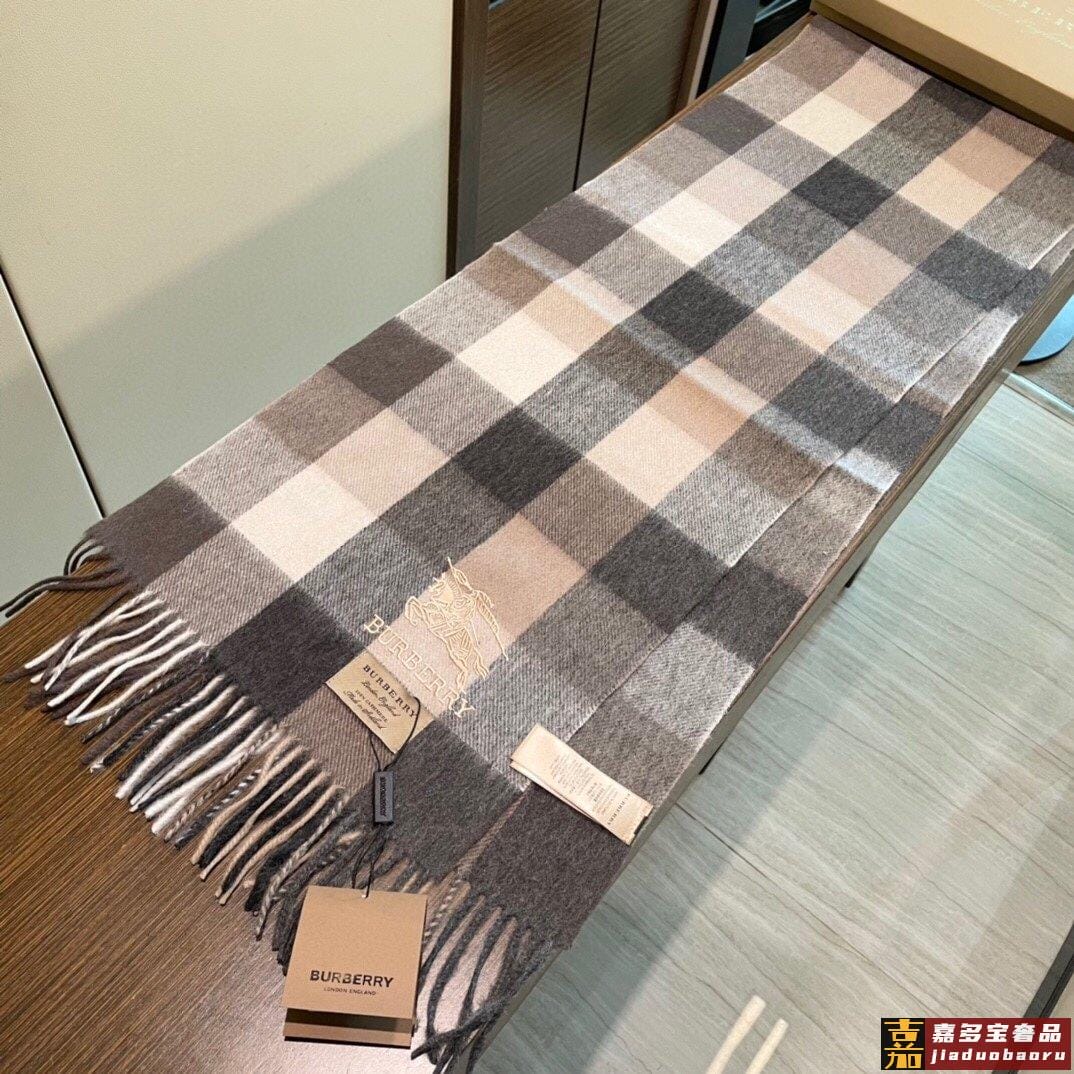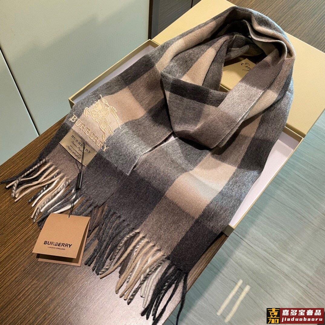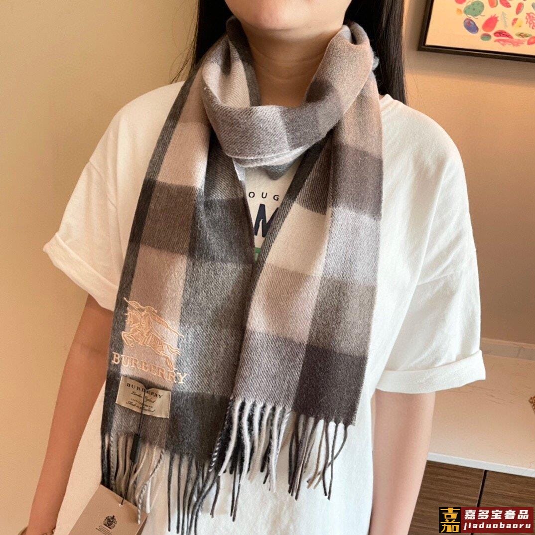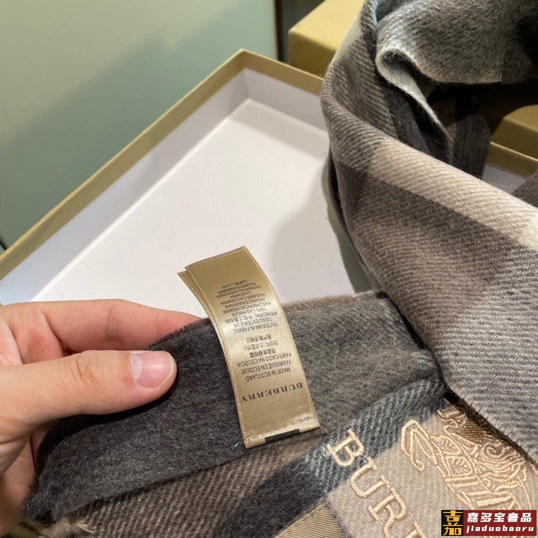 巴宝莉轻盈格纹围巾最新款出货了精美马标刺绣精湛制作工艺首先臻