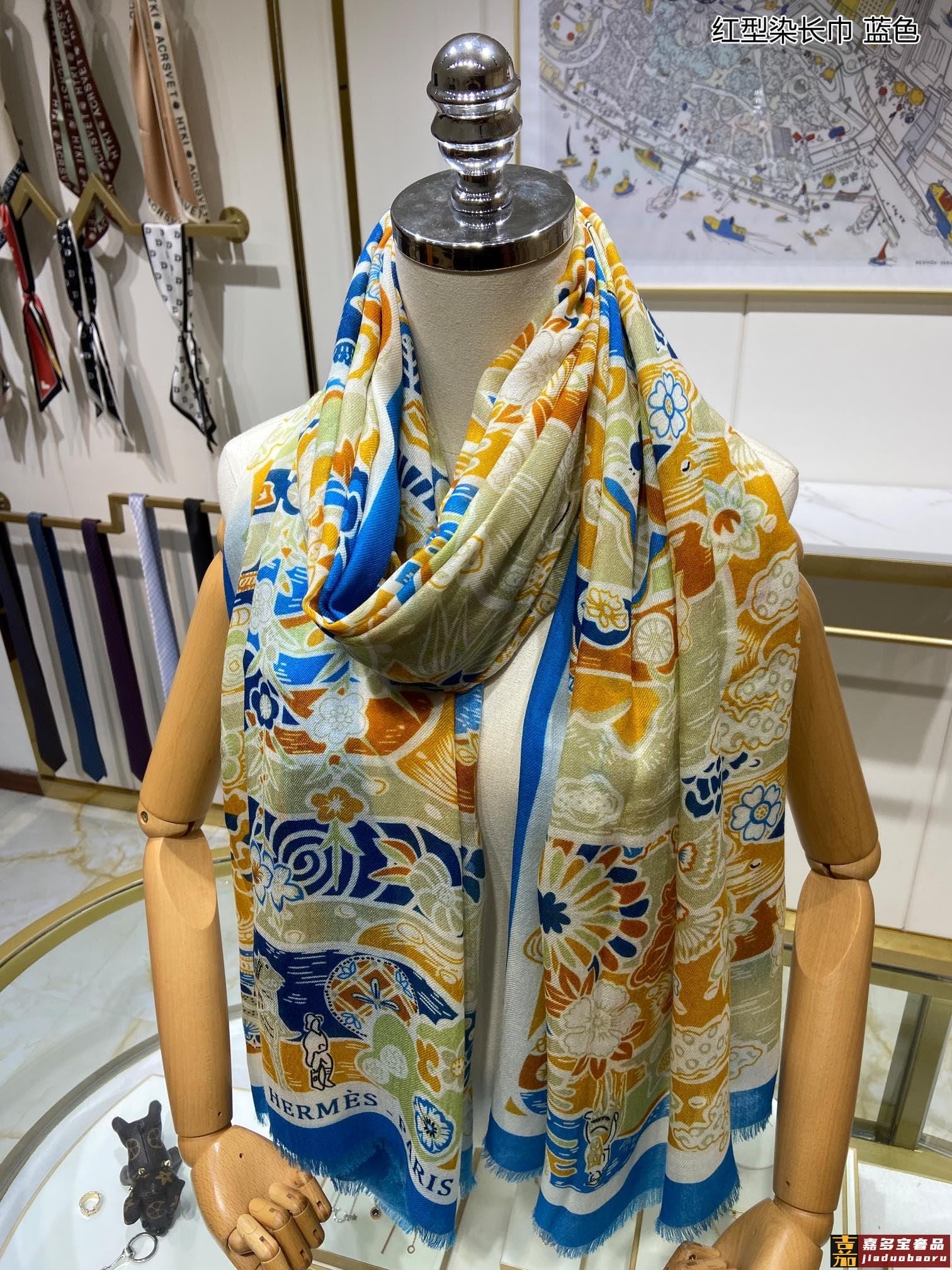 羊绒新款买了都说好看推荐红型染长巾顶级工艺超值爱马仕专柜爆款