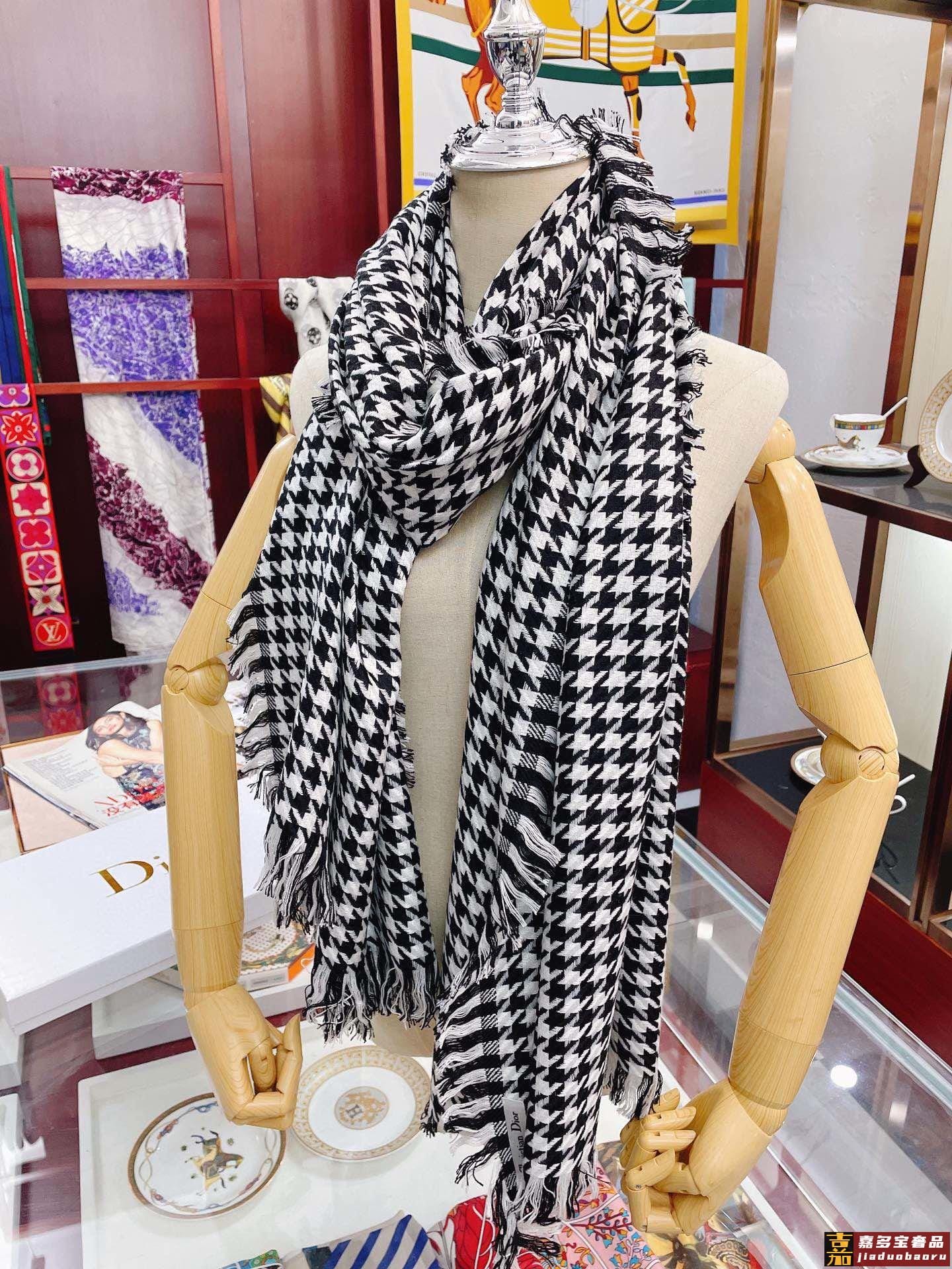 家千鸟格羊绒围巾今年千鸟格又火了起来众多大牌都有出这个元素的