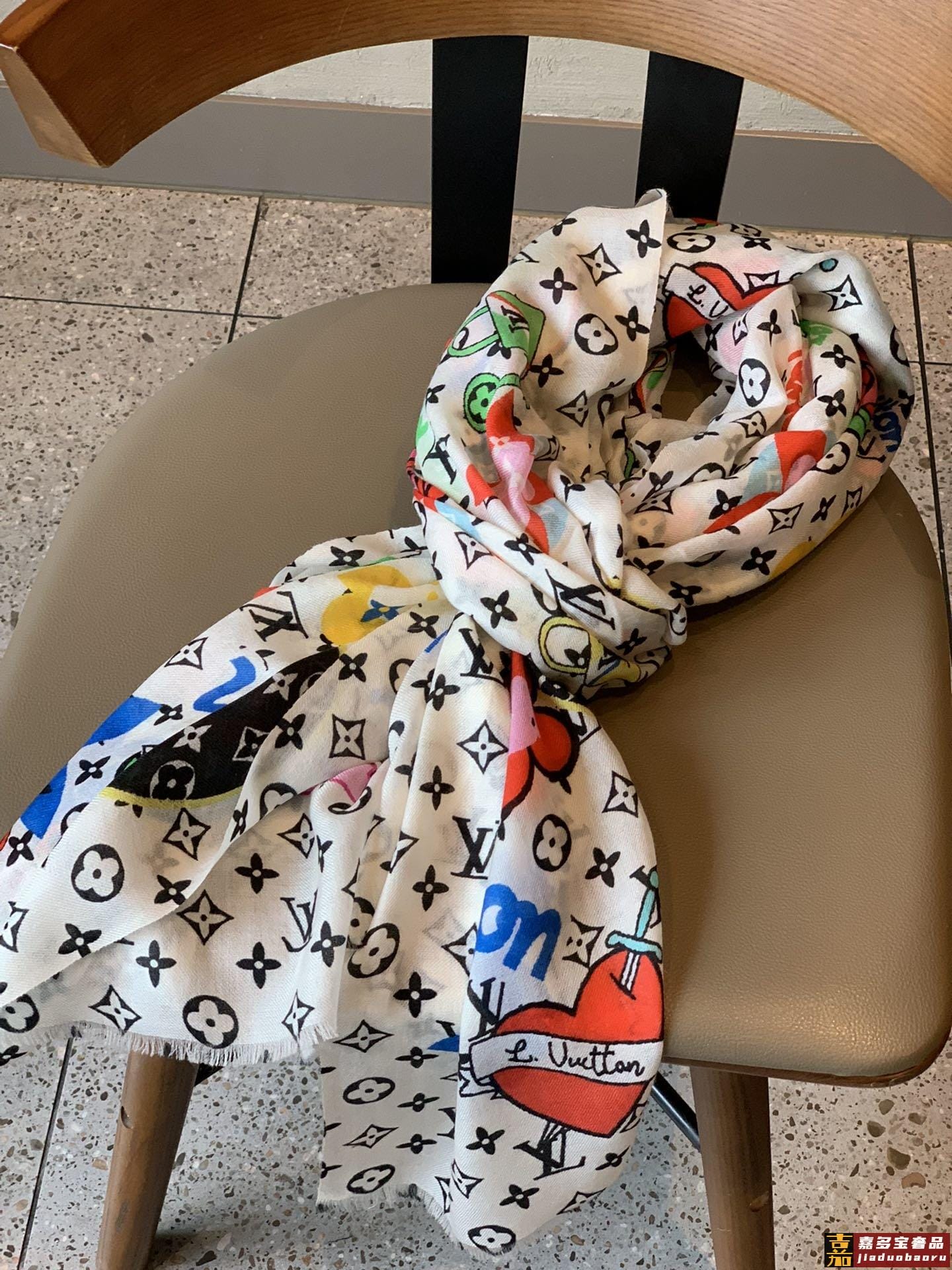 典雅高贵婴儿般的柔软触感同步专柜彩色贴饰羊绒长围巾巧妙利用徽