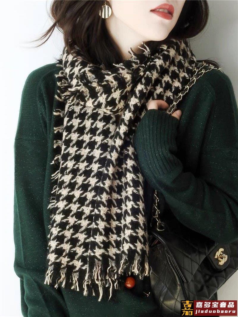 爆款款格子马标围巾厘米色织格子羊绒围巾支高支纱线手感不输纯羊