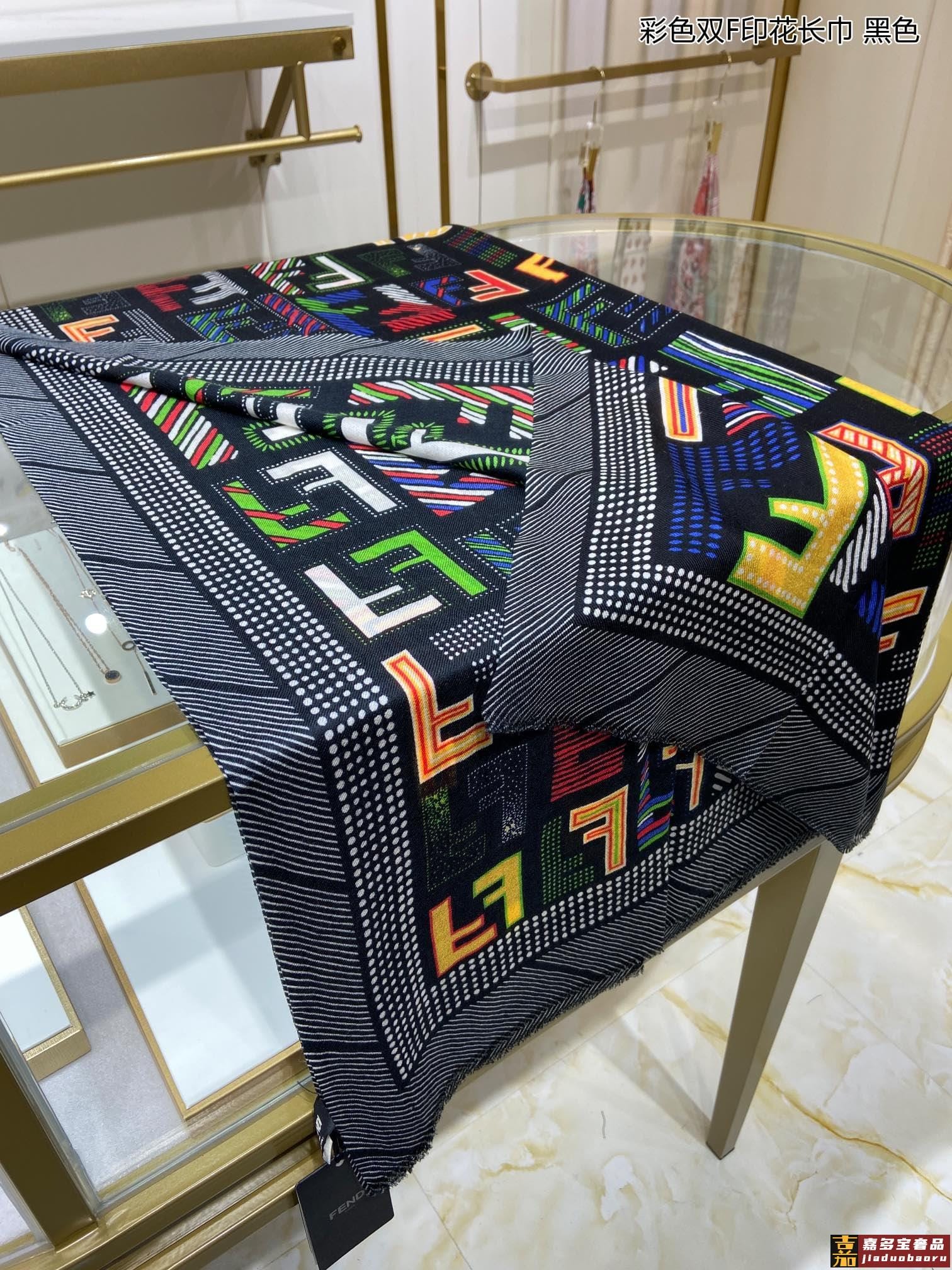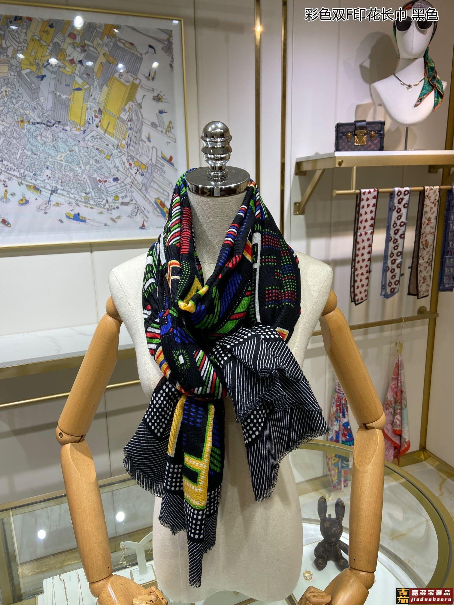羊绒新款家最新的专柜主打款彩色双印花长巾度假及日常都非常好搭