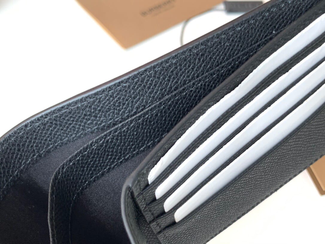 粒面皮革双折钱夹【B?家】原单出品??~~??大面采用进口手掌纹皮搭配黑色小牛皮,银色烫金,?专柜品质、做工精细?实物拍摄?,??80146531黑色,尺寸11cm*10cm*