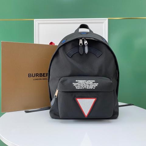 ?B家新款图章尼龙双肩包,搭配徽章贴花及品牌地址印花,搭配光