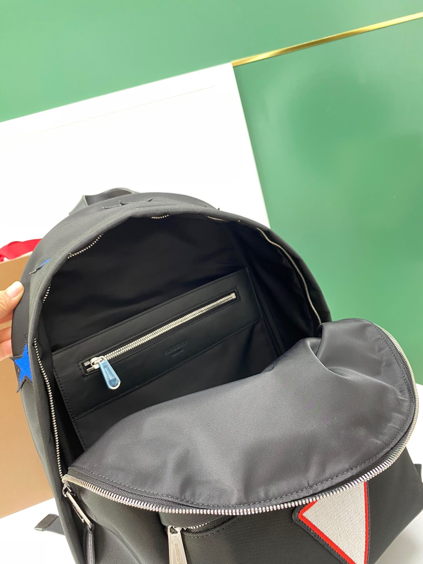 ?B家新款图章尼龙双肩包,搭配徽章贴花及品牌地址印花,搭配光