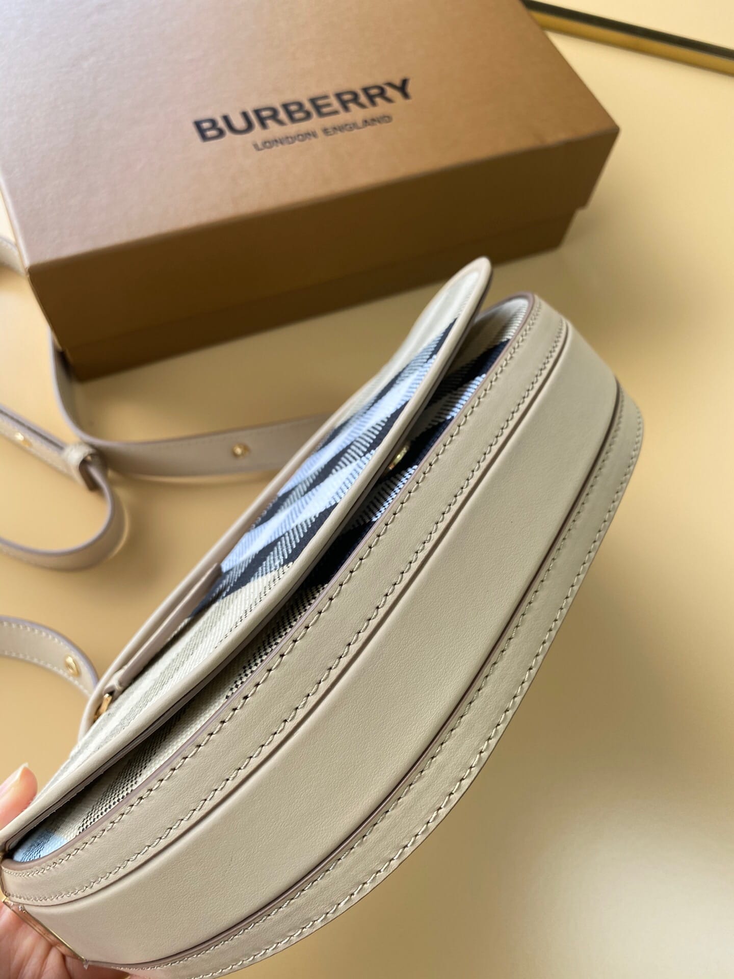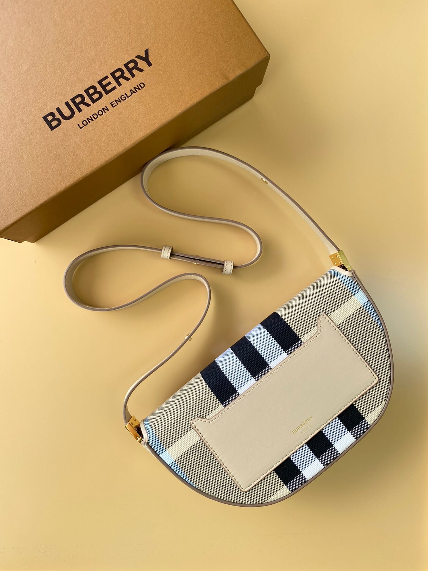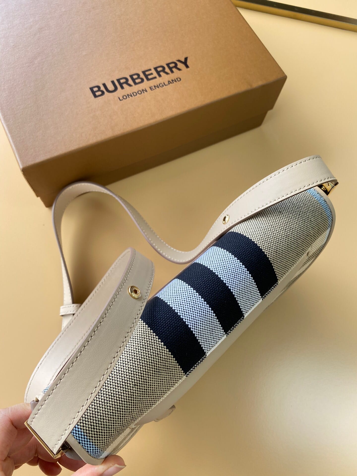 ?B家最新精巧的斜背包,精选提花精纺的格纹帆布面料,装饰精美