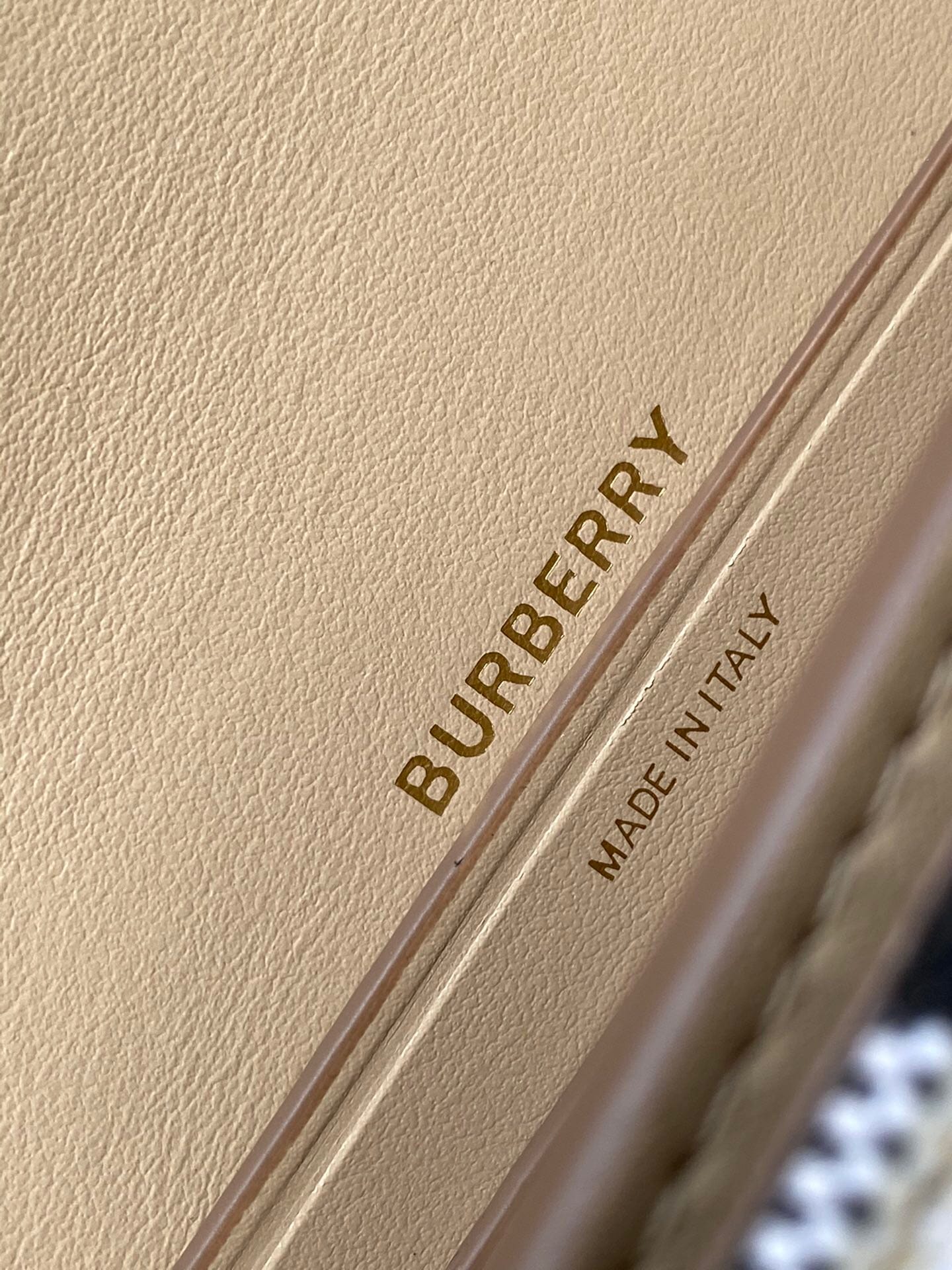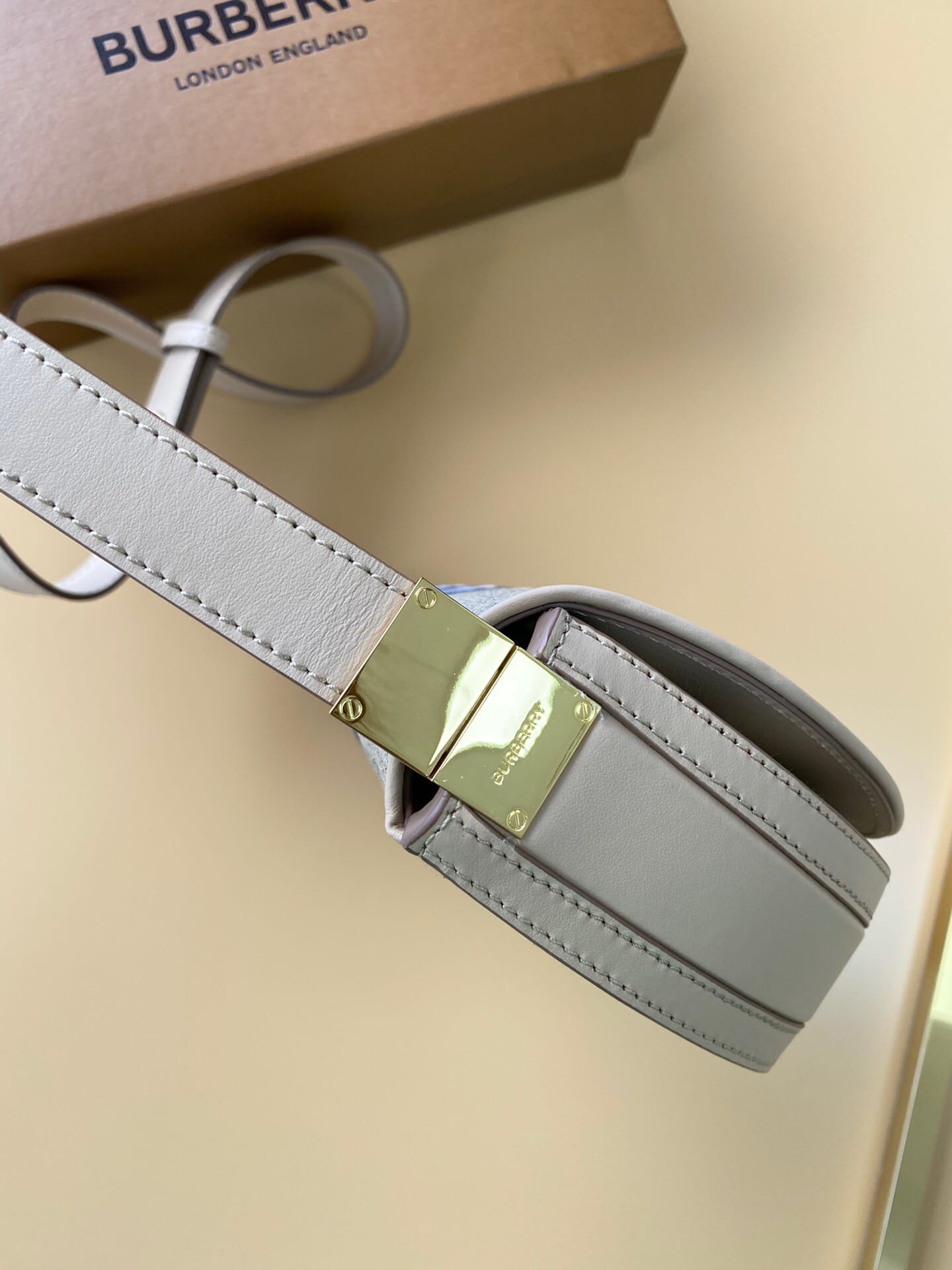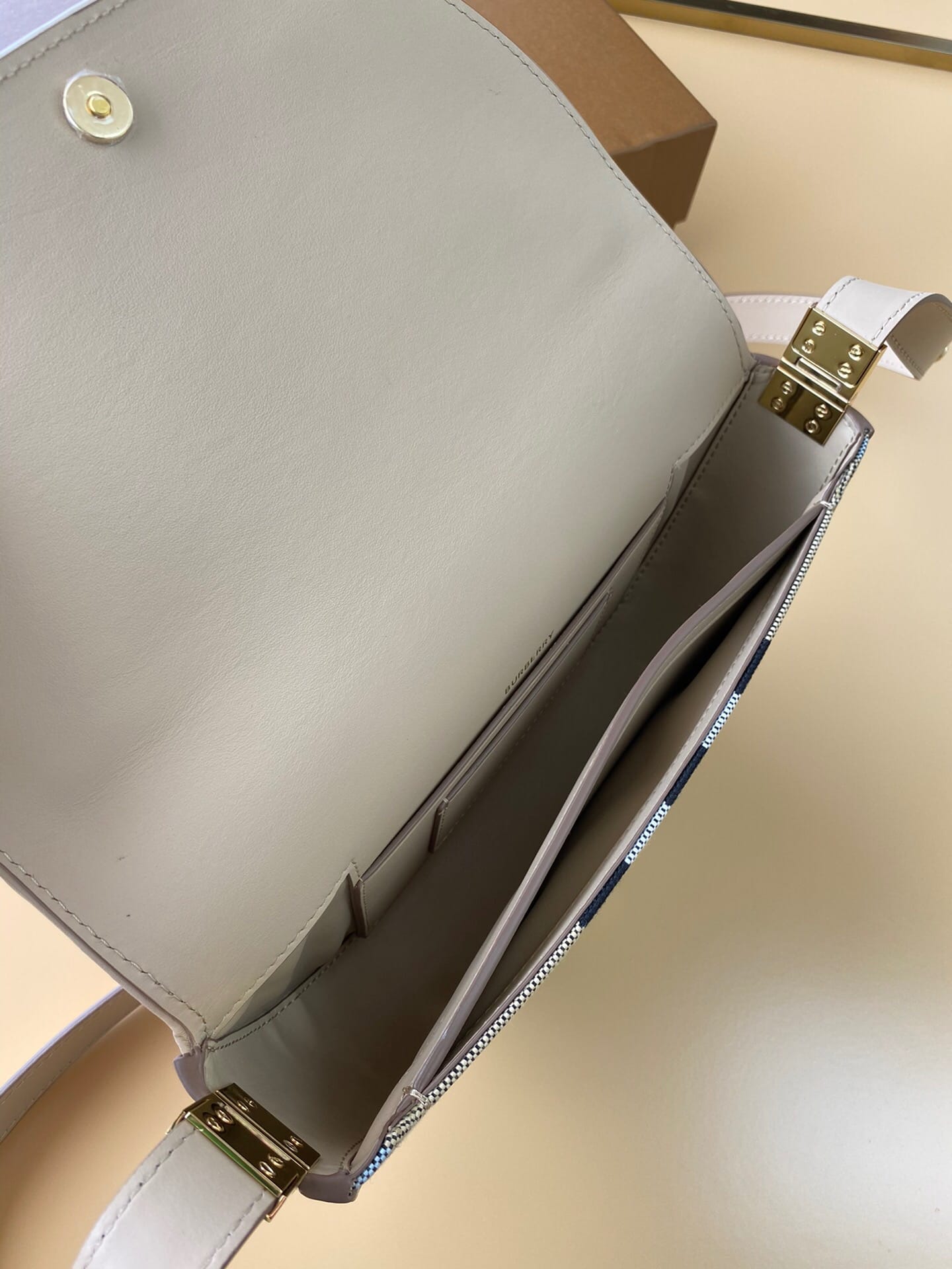 B家版型立挺的「TB 专属标识锁扣包」,精选提花精纺的格纹帆