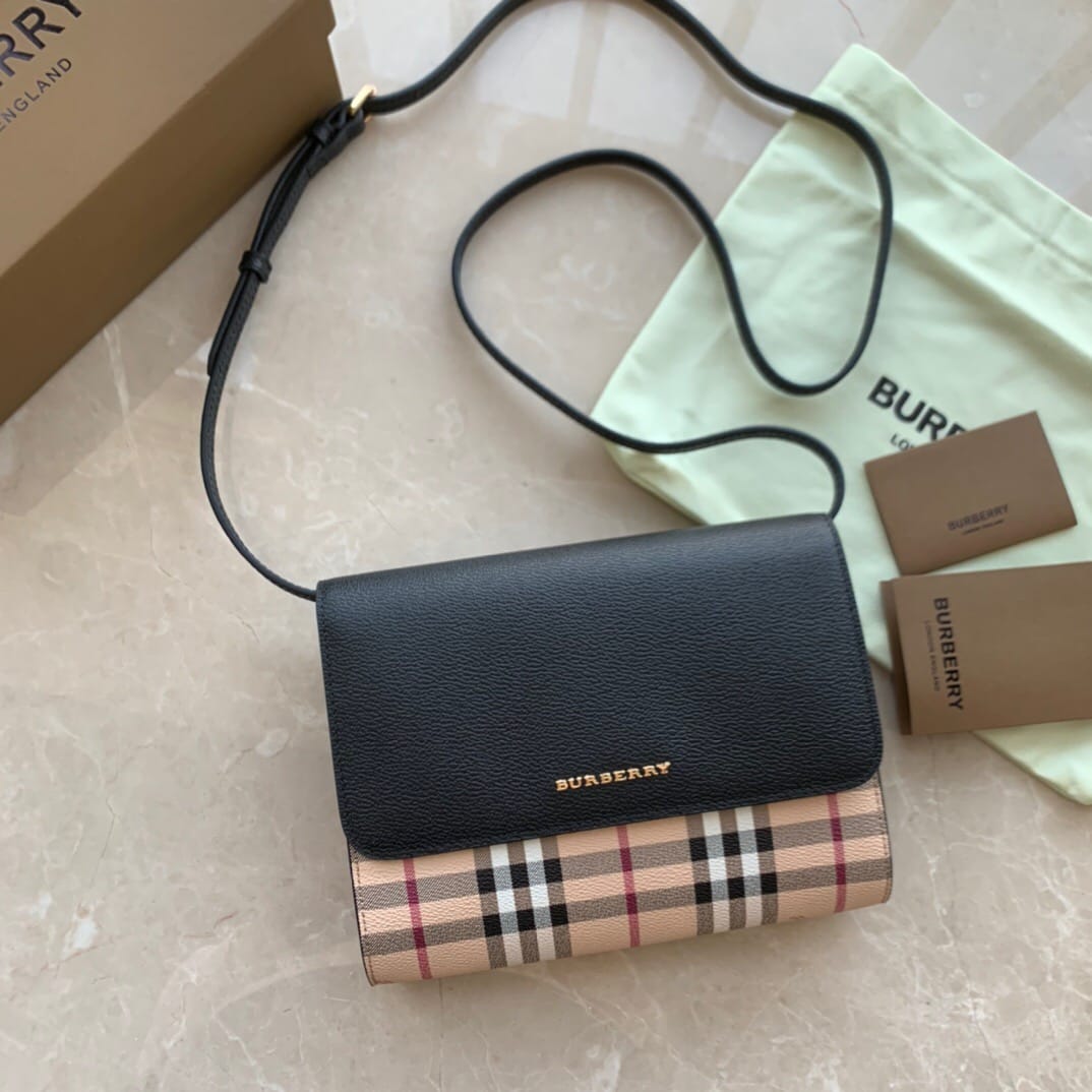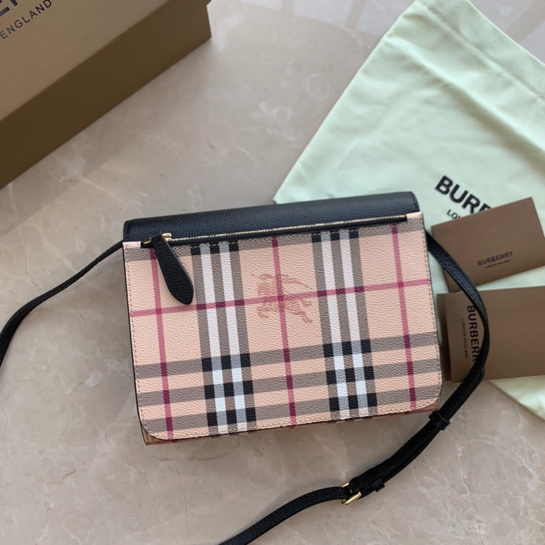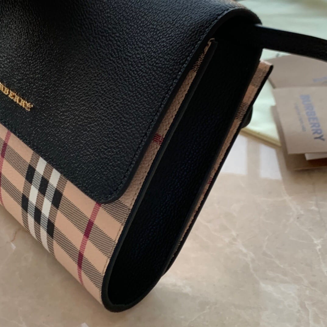 Haymarket格纹拼皮革斜背包?【B?家】原单出品??~