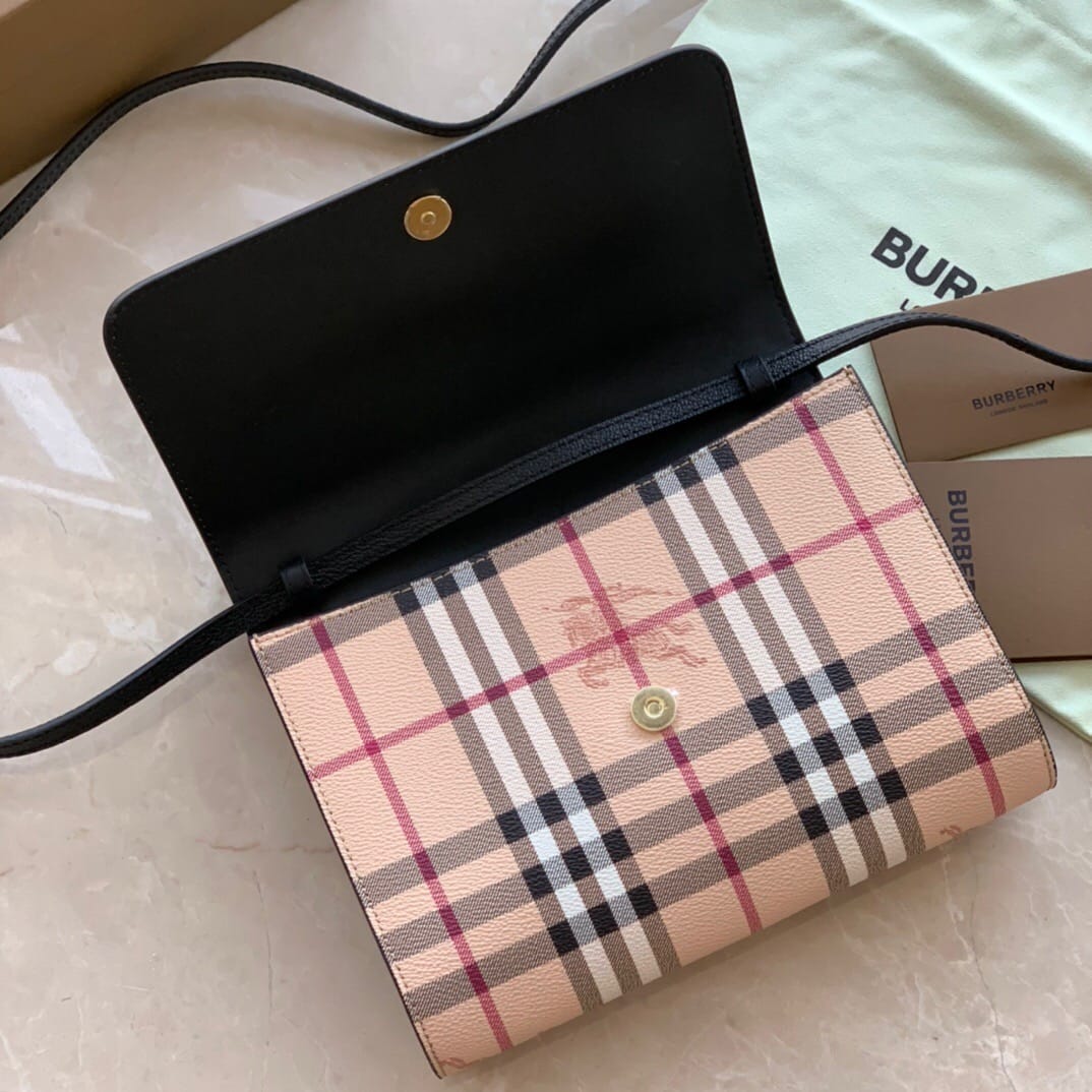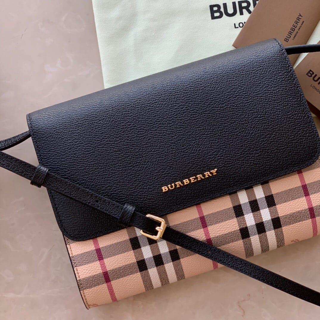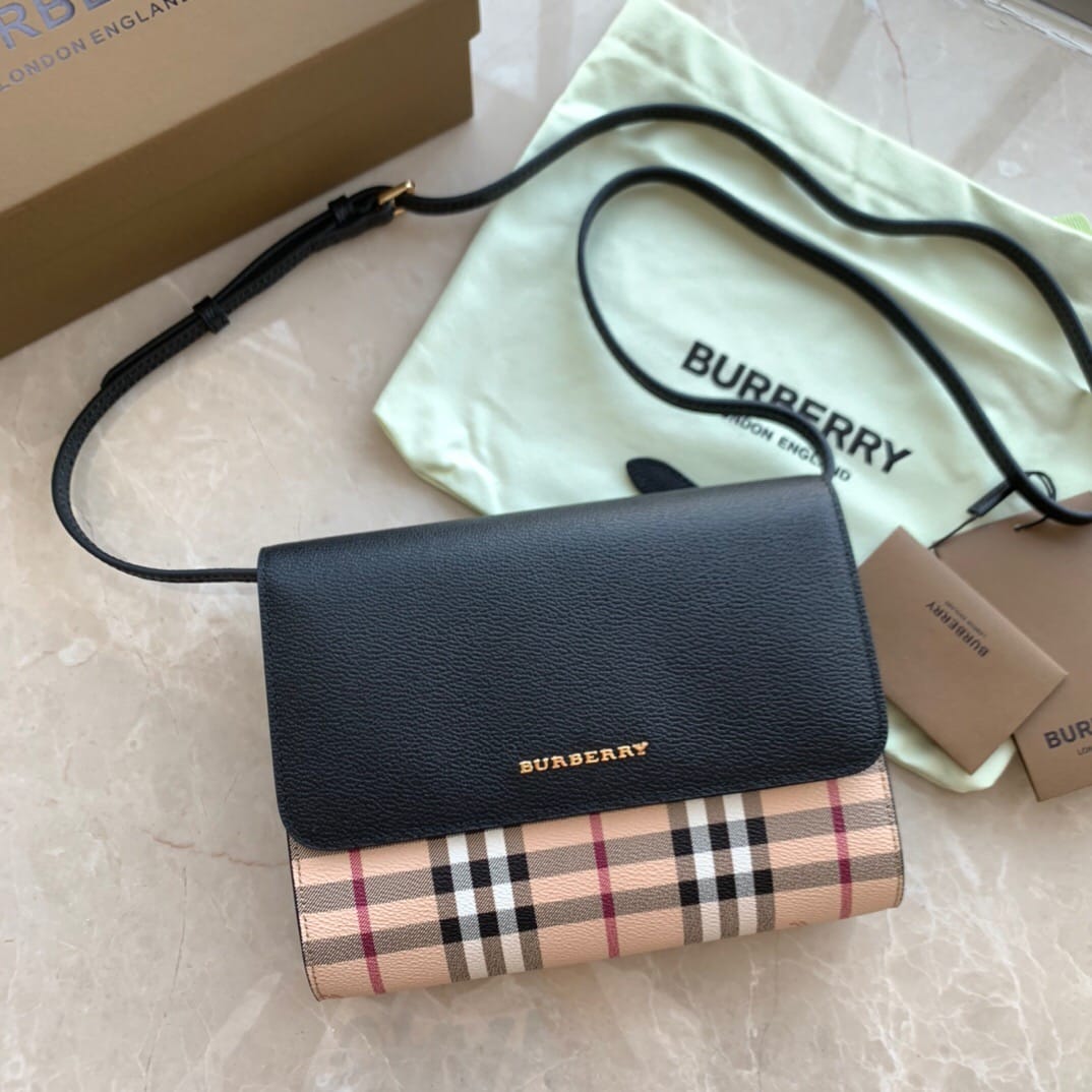Haymarket格纹拼皮革斜背包?【B?家】原单出品??~