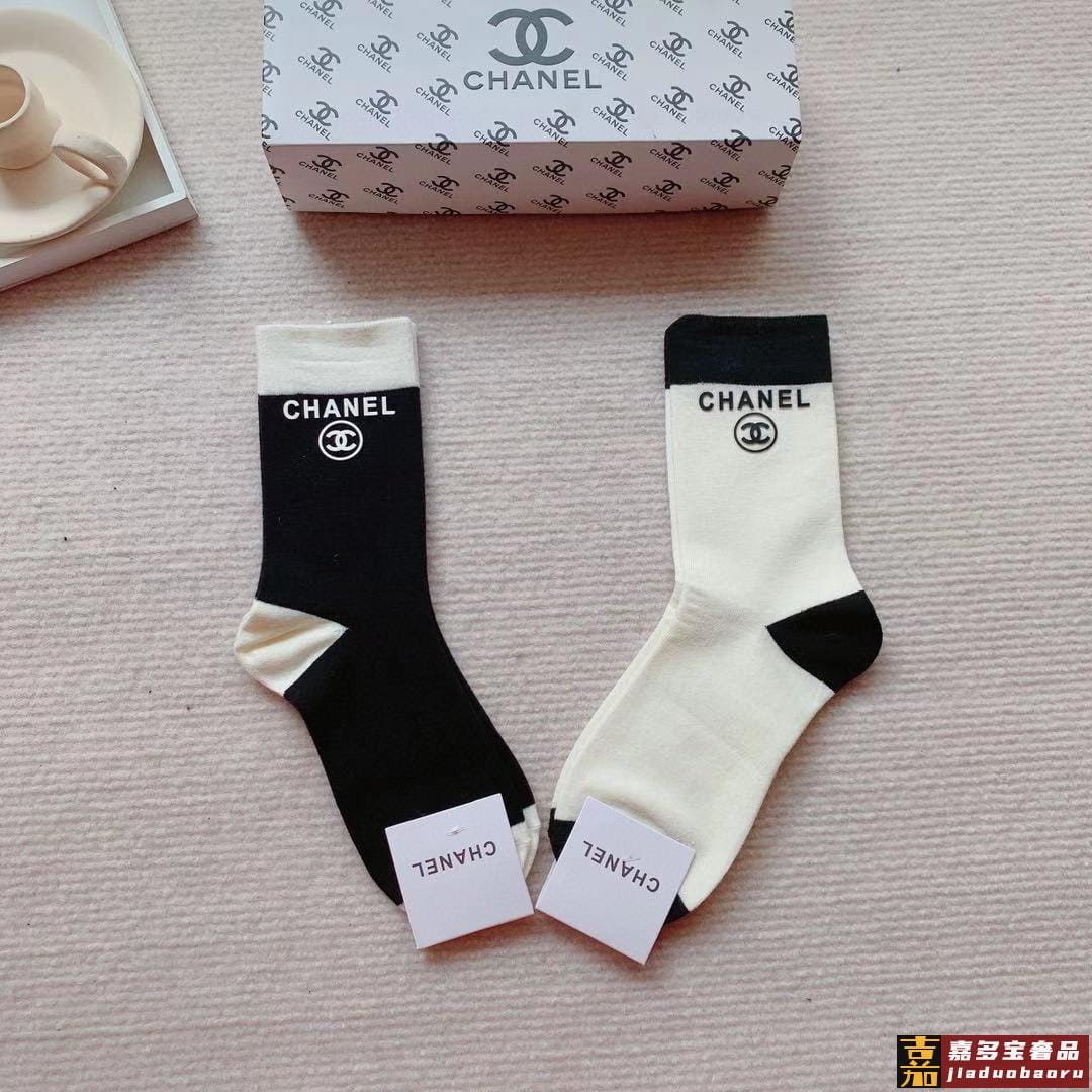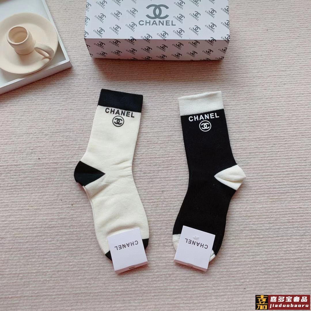 配包装一盒双香奈儿专柜新款男女款高端烫印袜子专柜同步上新超柔