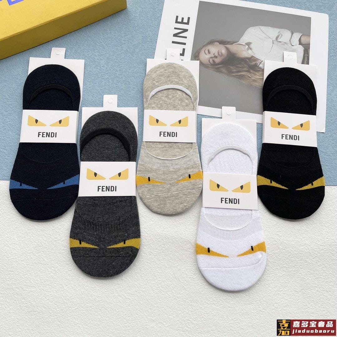 配包装一盒五双芬迪新款隐形男女款船形袜子专柜同步船袜小怪兽经