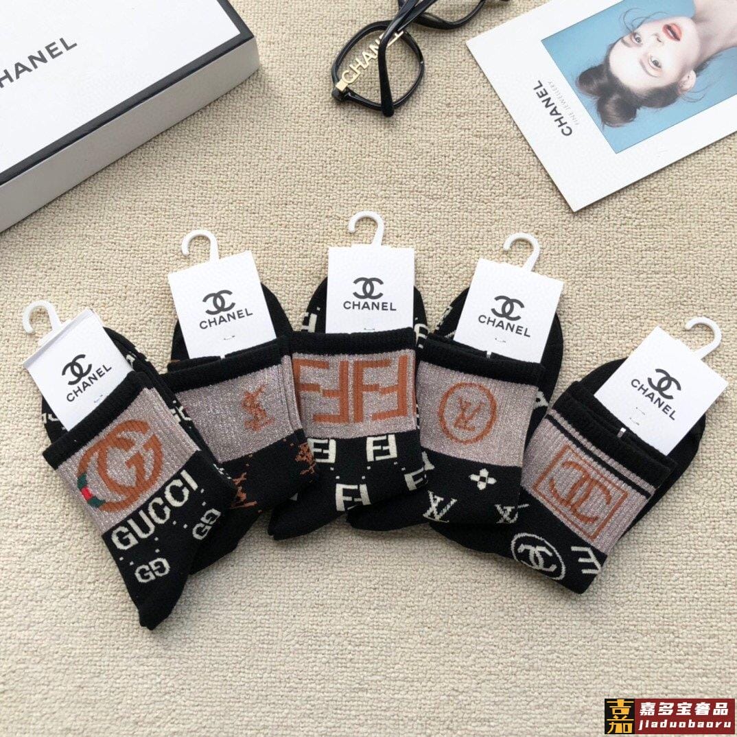 配包装一盒五双芬迪爆款高版本中筒袜好看到爆炸欧美大牌长筒袜潮