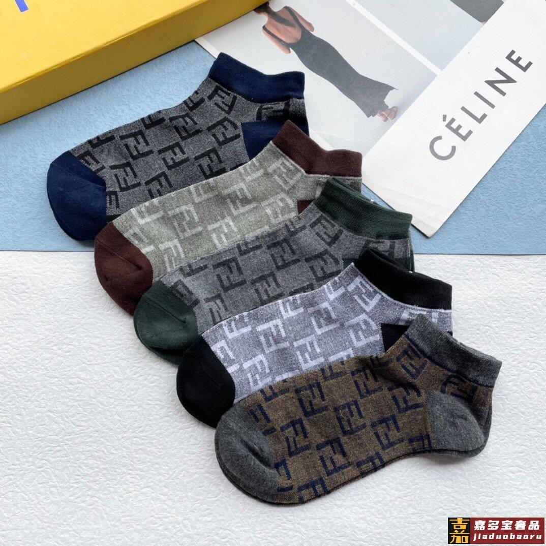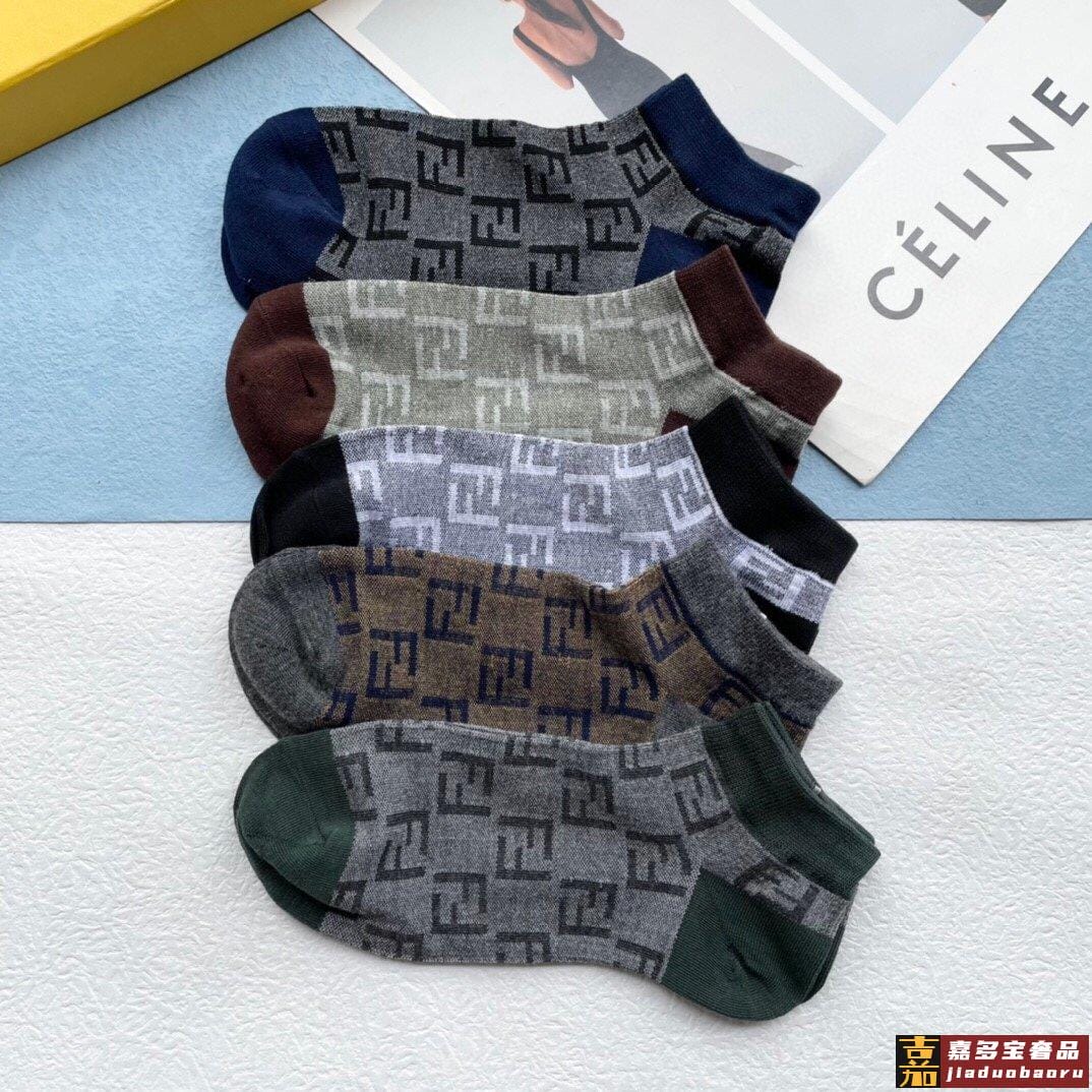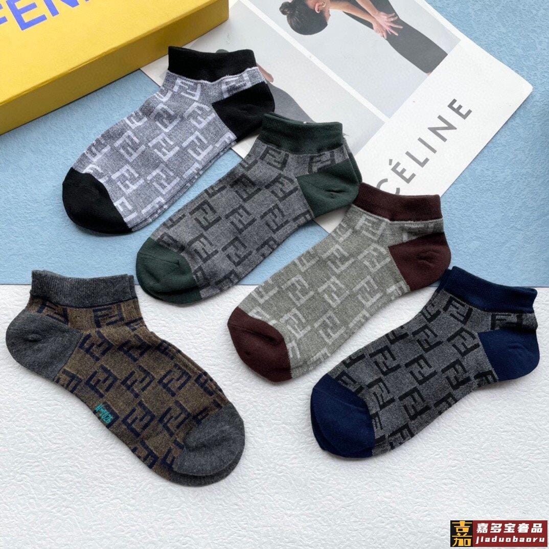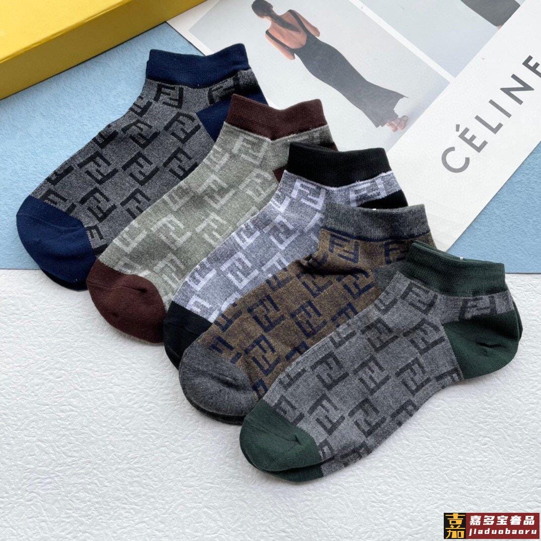 配包装一盒五双春款上新芬迪新款男士船袜大专柜同步长袜超级经典