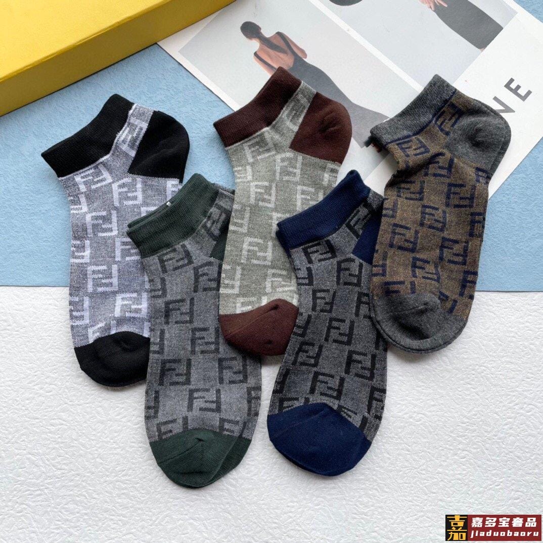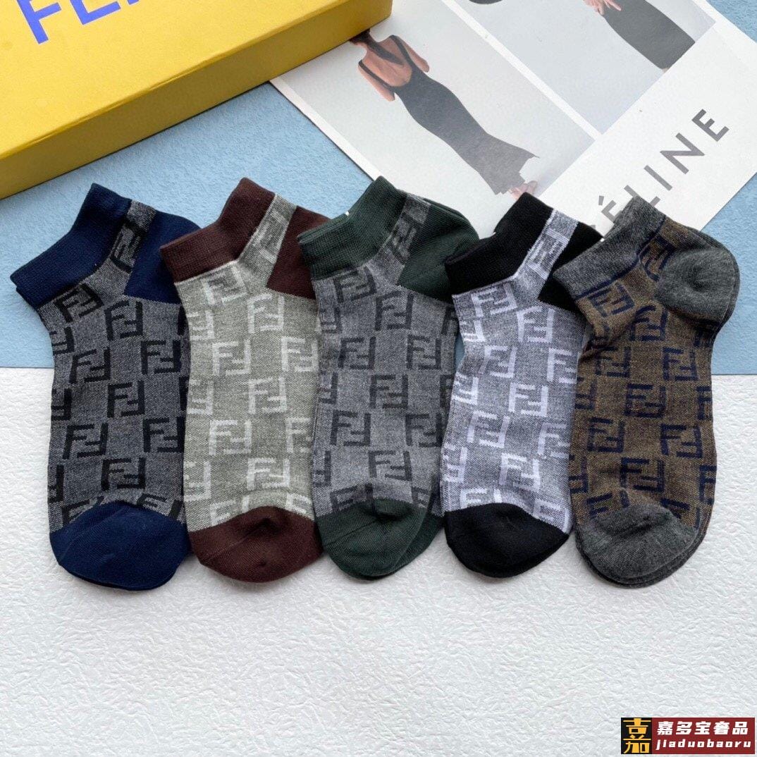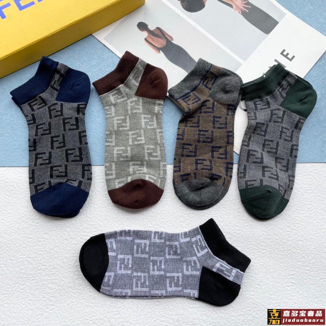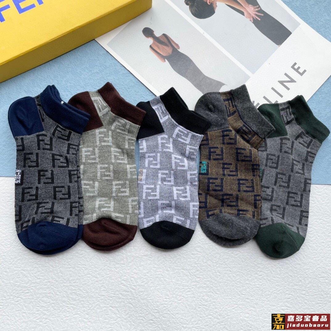 配包装一盒五双春款上新芬迪新款男士船袜大专柜同步长袜超级经典