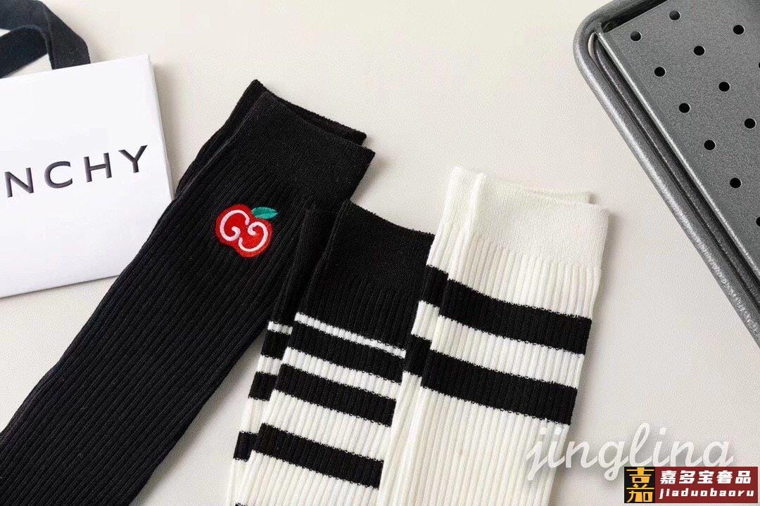 配送包装一盒三双爆款古奇专柜新款男女款刺绣小腿袜子专柜同步上
