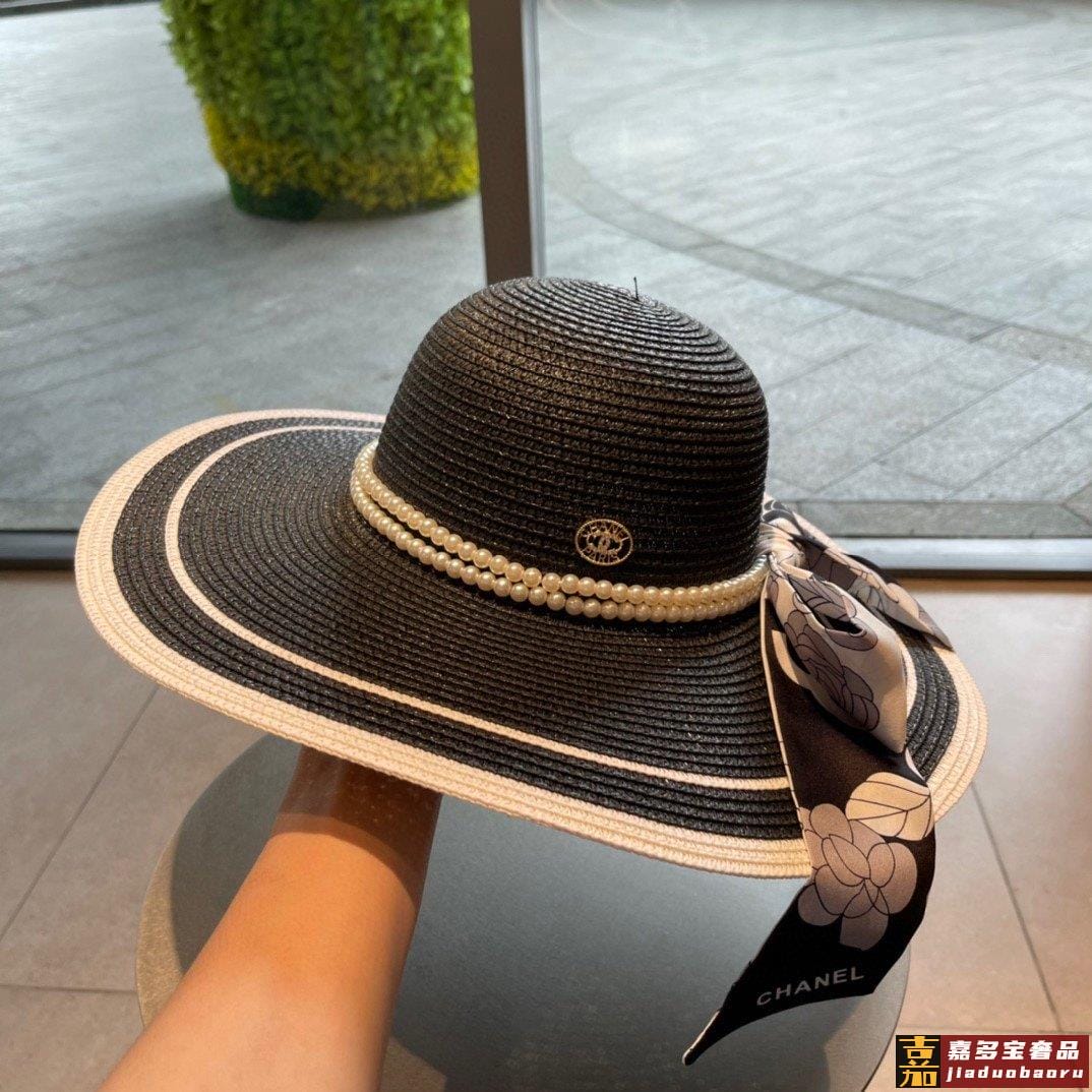 配防尘袋香奈儿草帽草帽香奈儿平顶草帽礼帽怄火质感非常好拉菲草