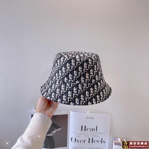 迪奥新款千鸟格印花字母织带帆布渔夫帽这款海军蓝色茹伊印花桶帽