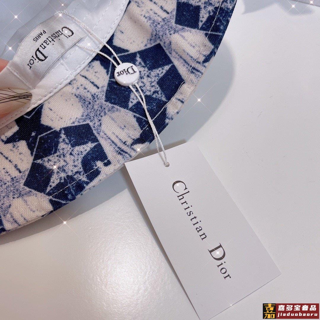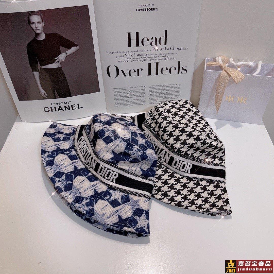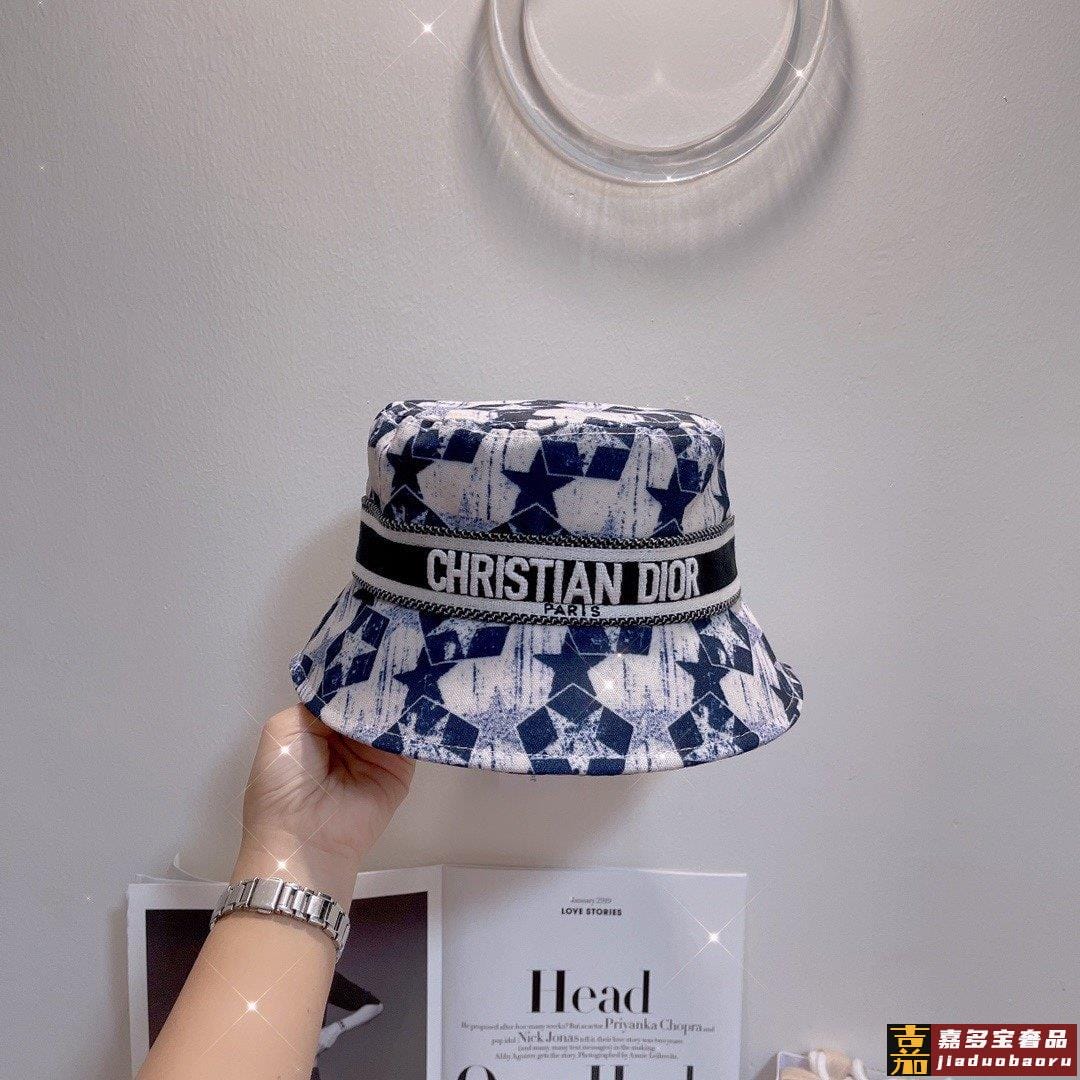迪奥新款五角星印花字母织带帆布渔夫帽这款海军蓝色茹伊印花桶帽