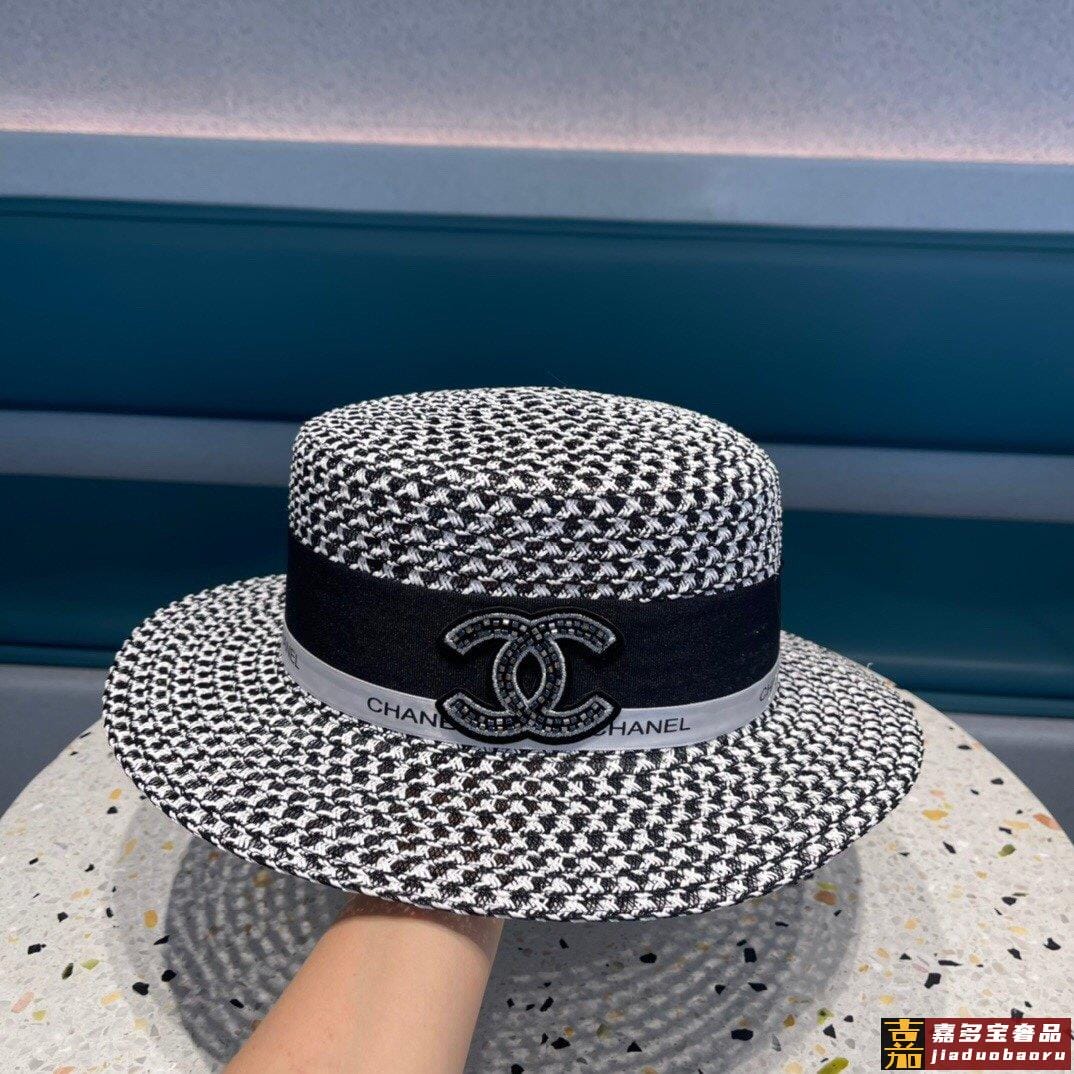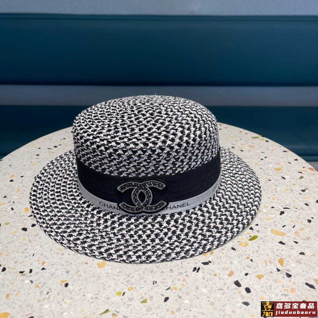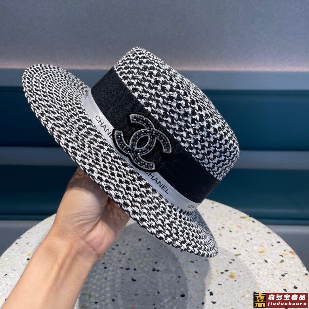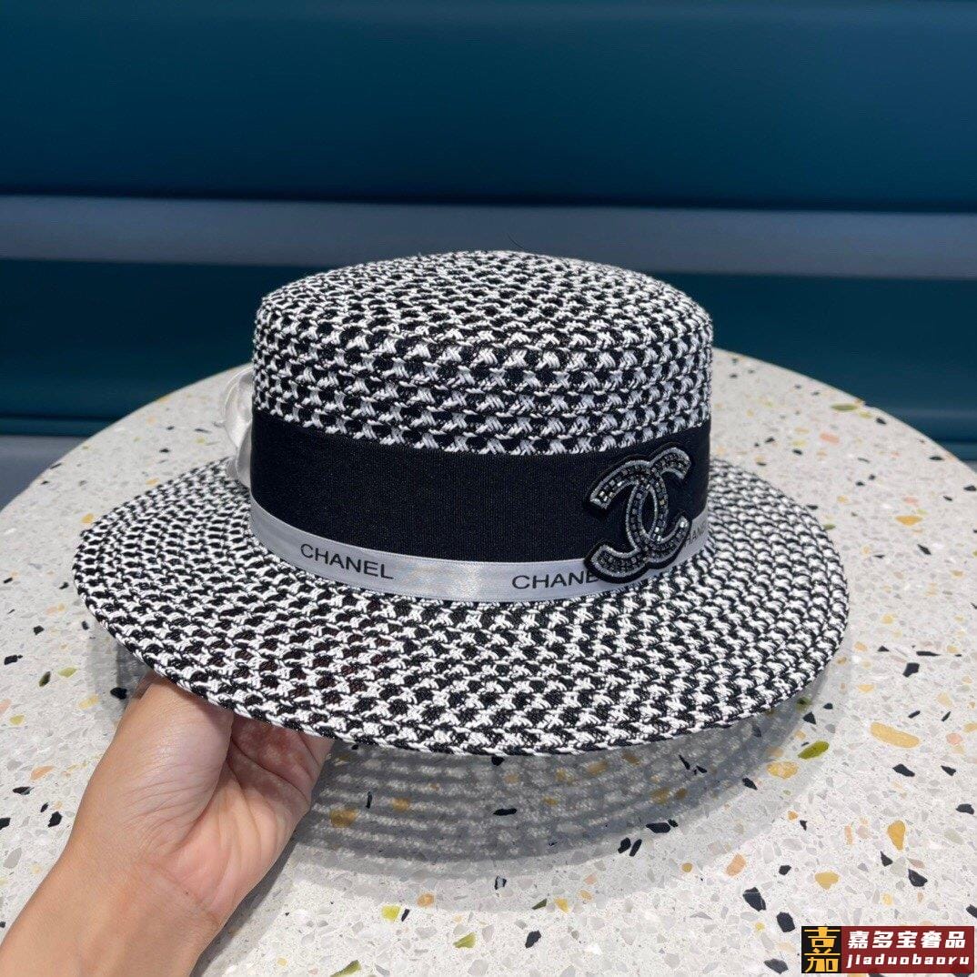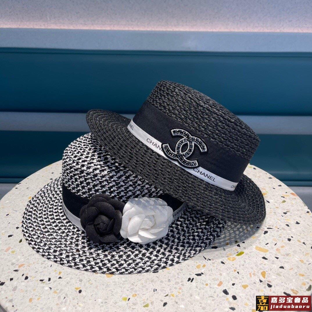 香奈儿山茶花平顶草帽赫本复古时尚女神气质单品出游必备