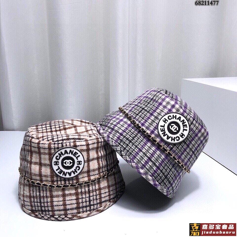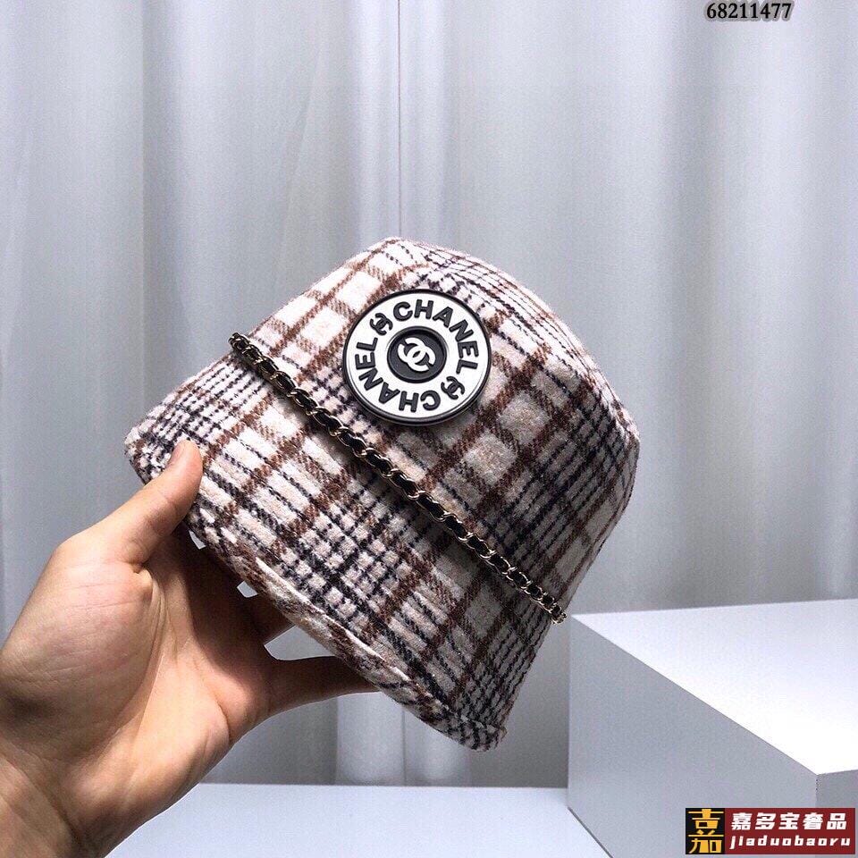 香奈儿新款细格子桶帽渔夫帽桶帽好洋气呀超修饰脸型呦永久不过时