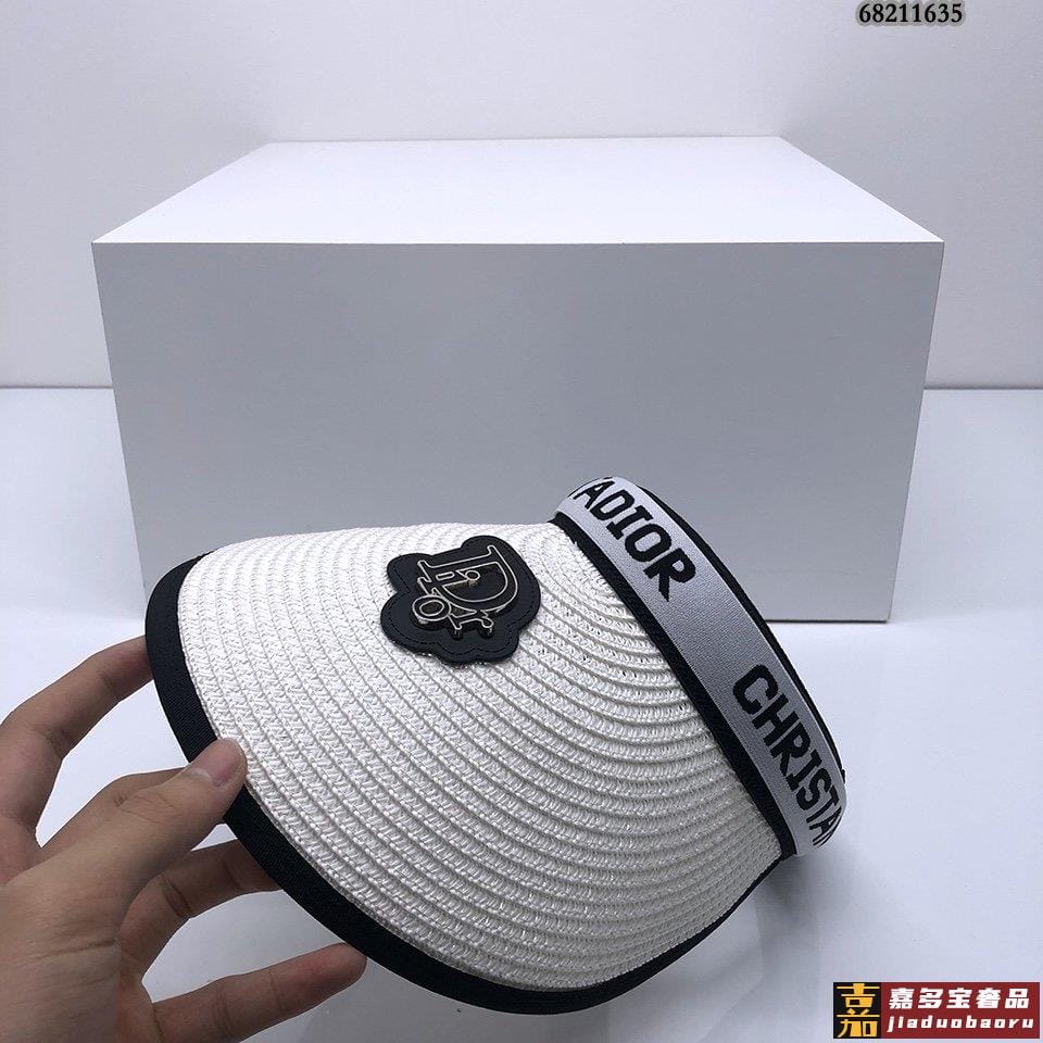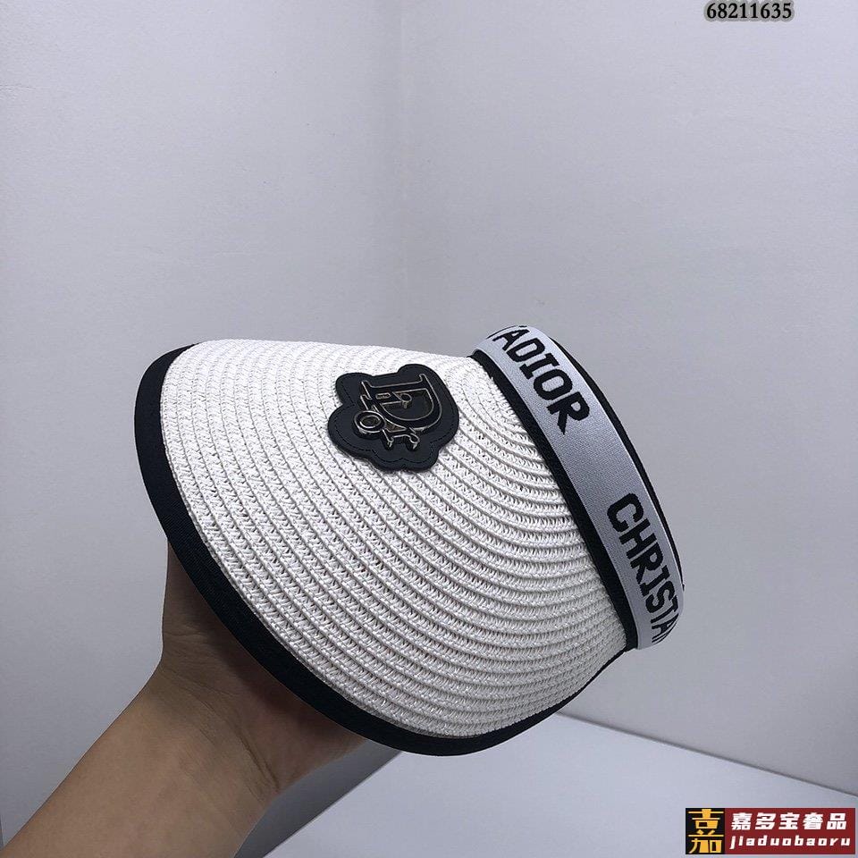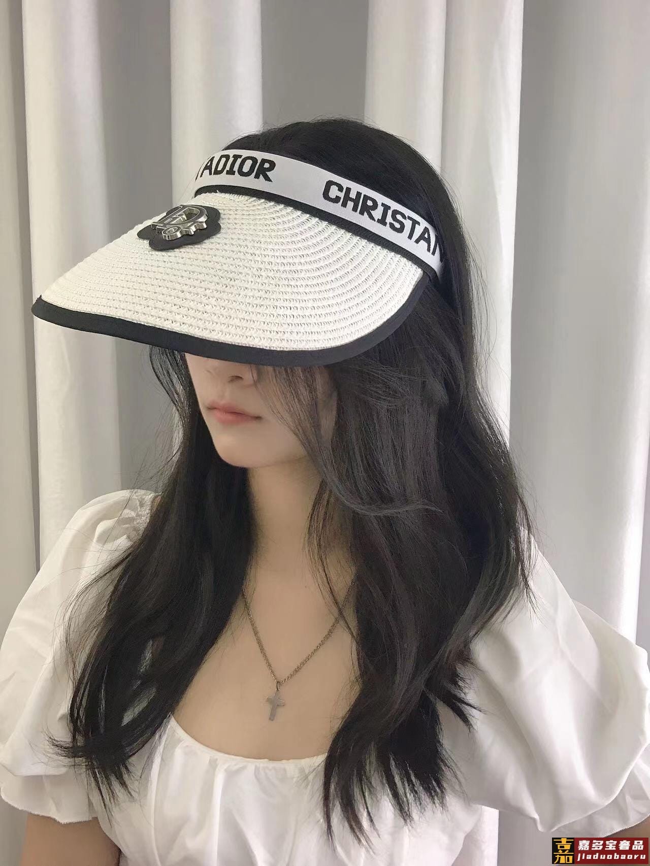 迪奥新款空顶帽草帽重工定制手工缝制欧美范透气休闲遮阳防晒必备