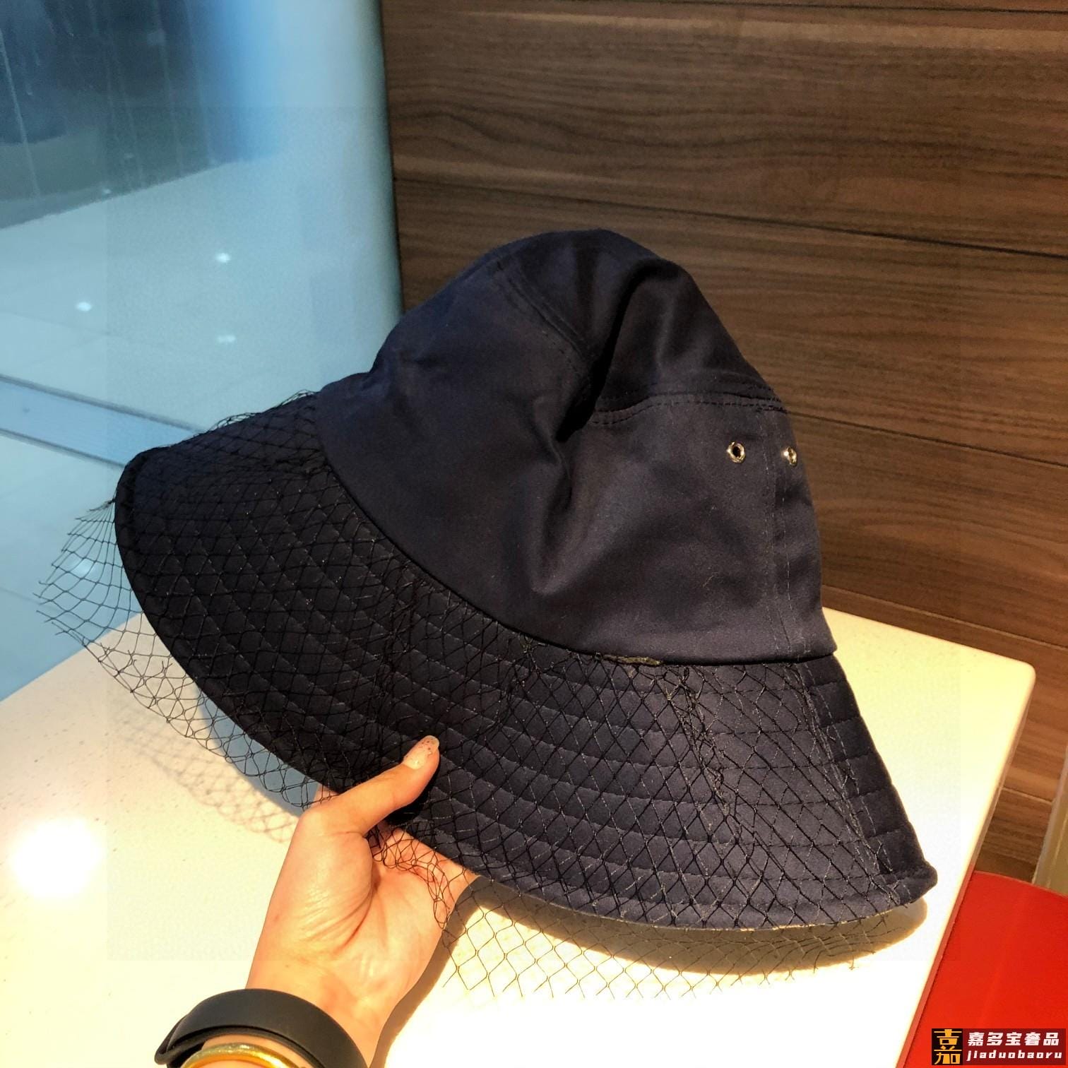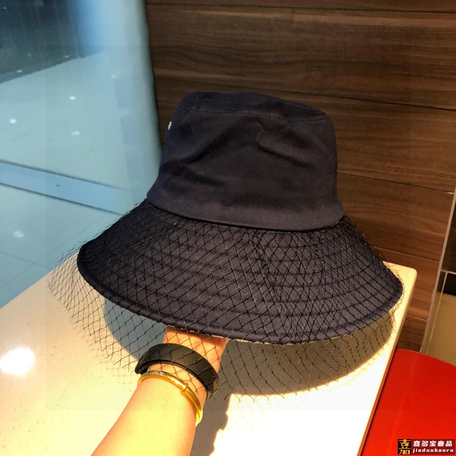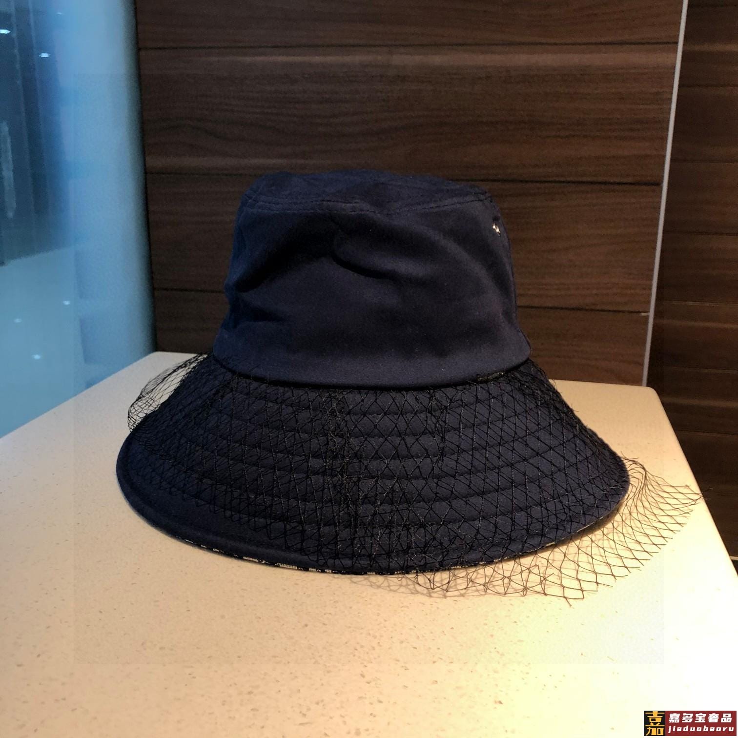 高版本大沿黑蓝两色入迪奥新品迪奥网纱渔夫帽机场质量代购版本适