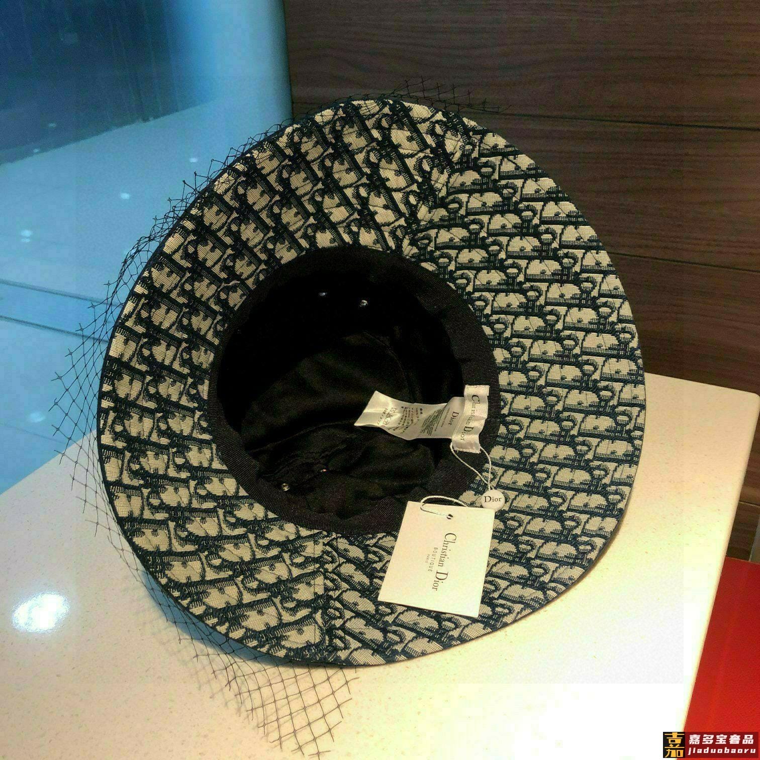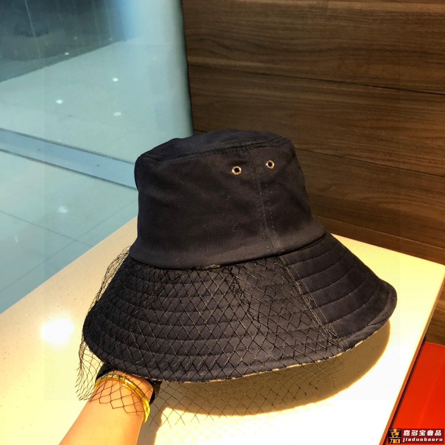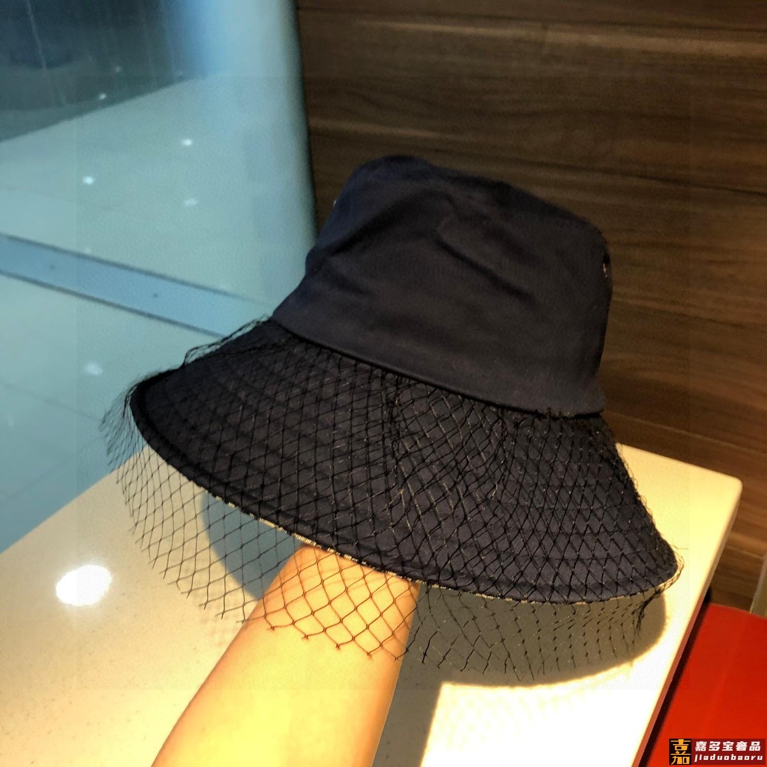 高版本大沿黑蓝两色入迪奥新品迪奥网纱渔夫帽机场质量代购版本适