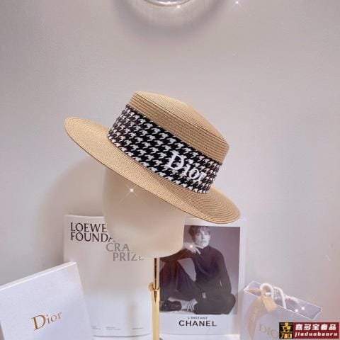 家新款草平顶帽高级优雅名媛风手工千鸟格织带一款细腻入微的小礼
