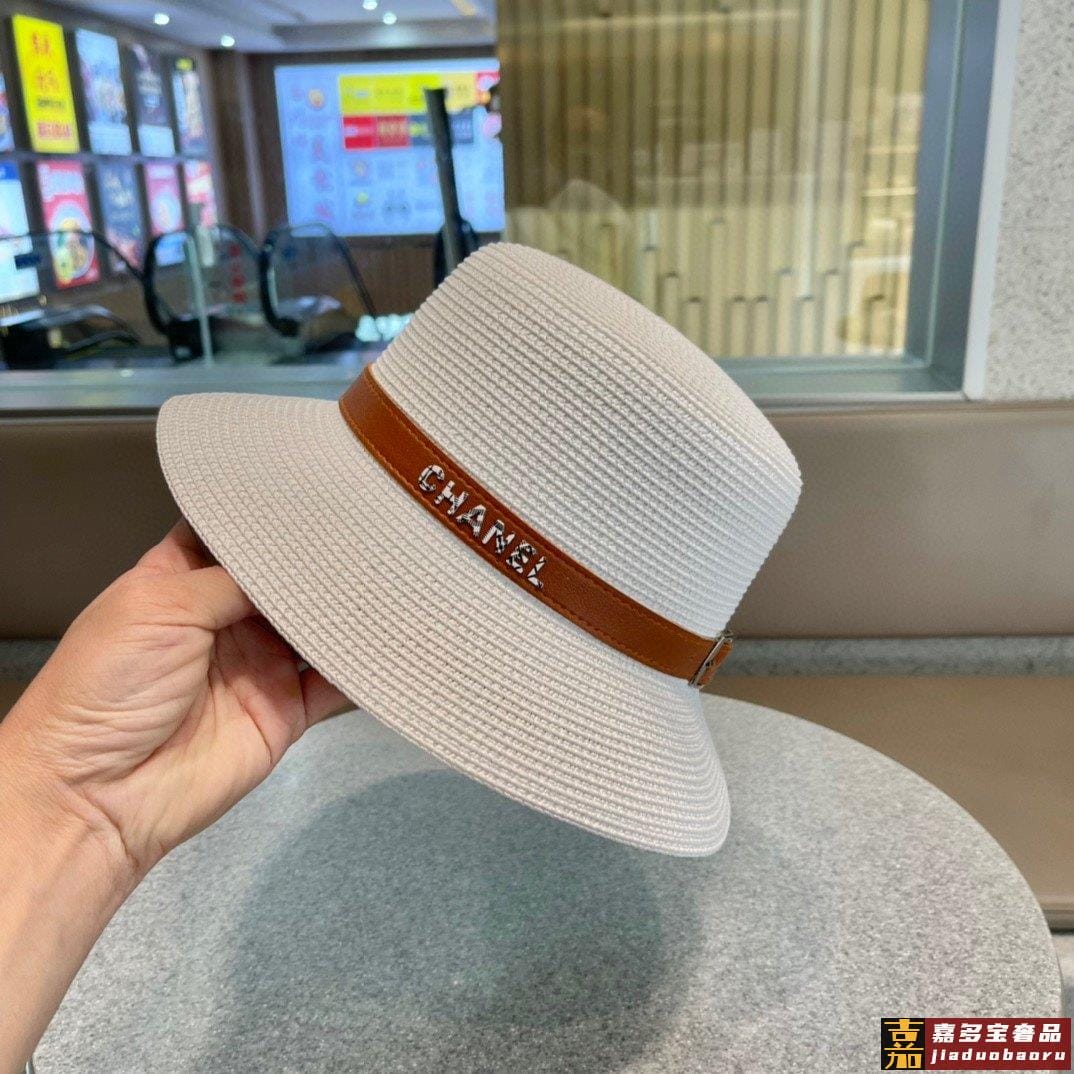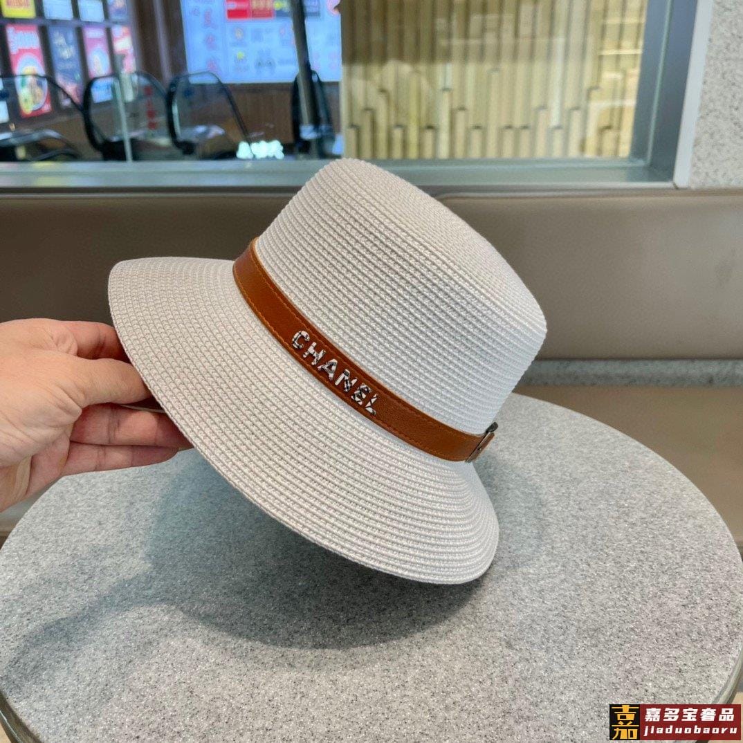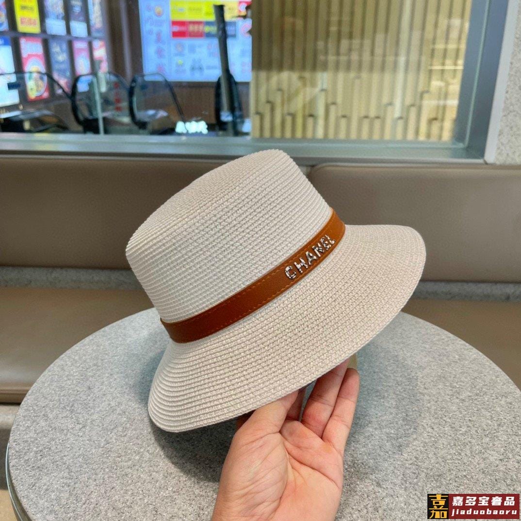 香奈儿早春新款草编皮带草帽盆帽沙滩风简约大方百搭单品出街首选