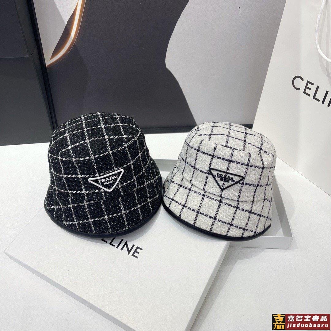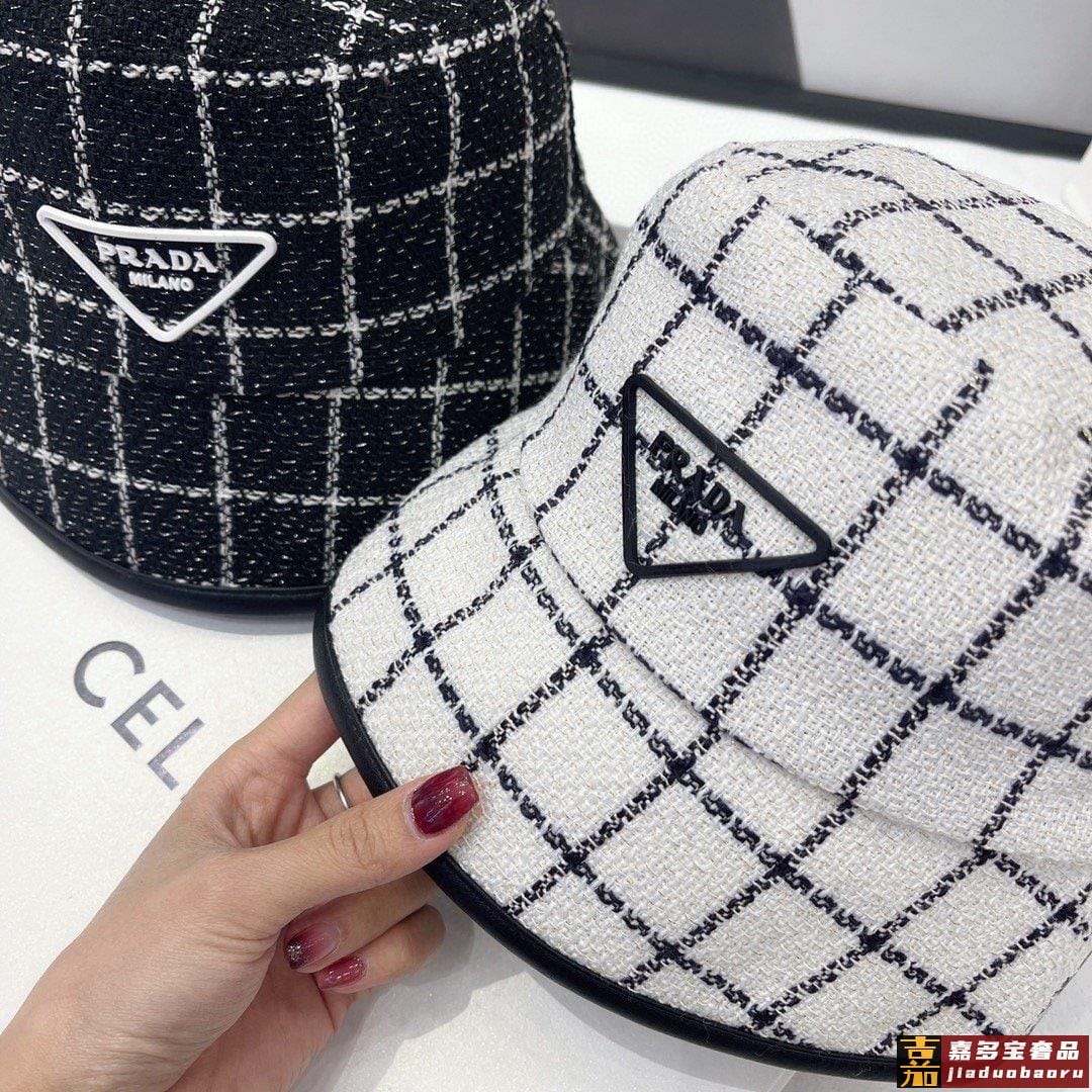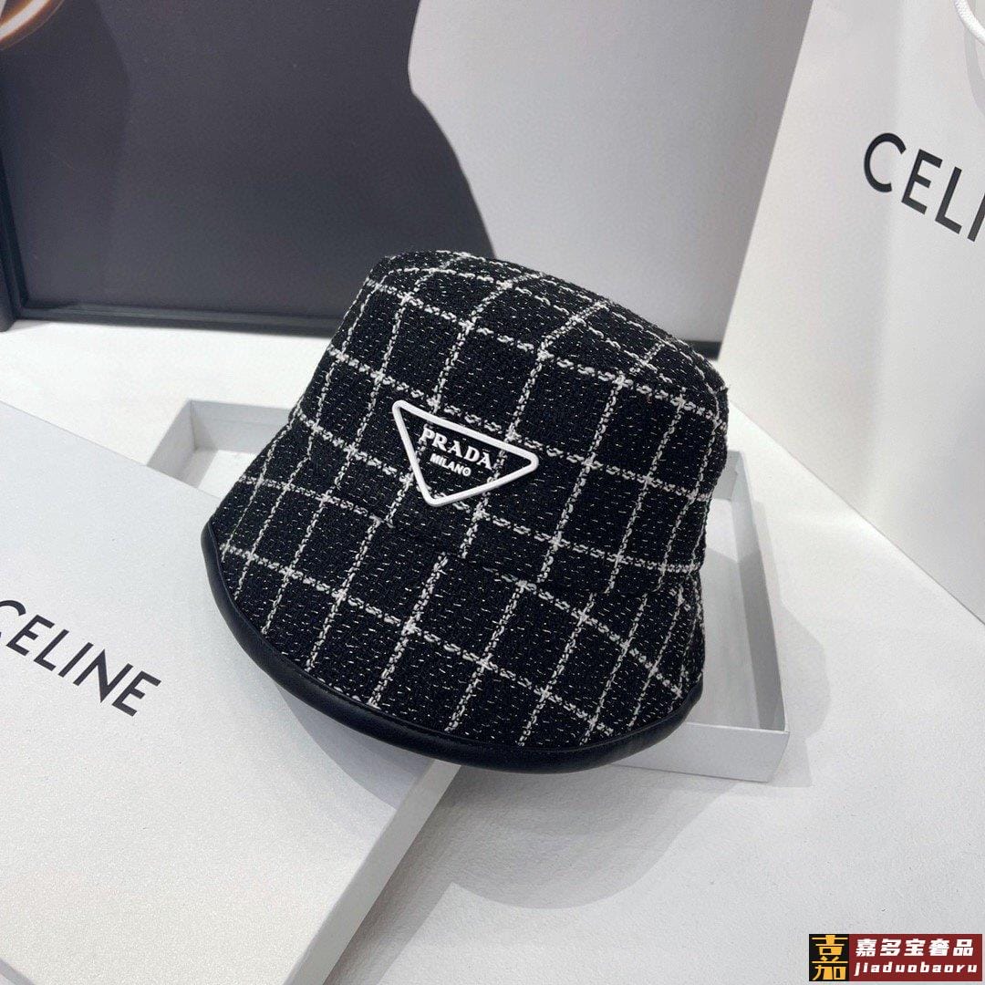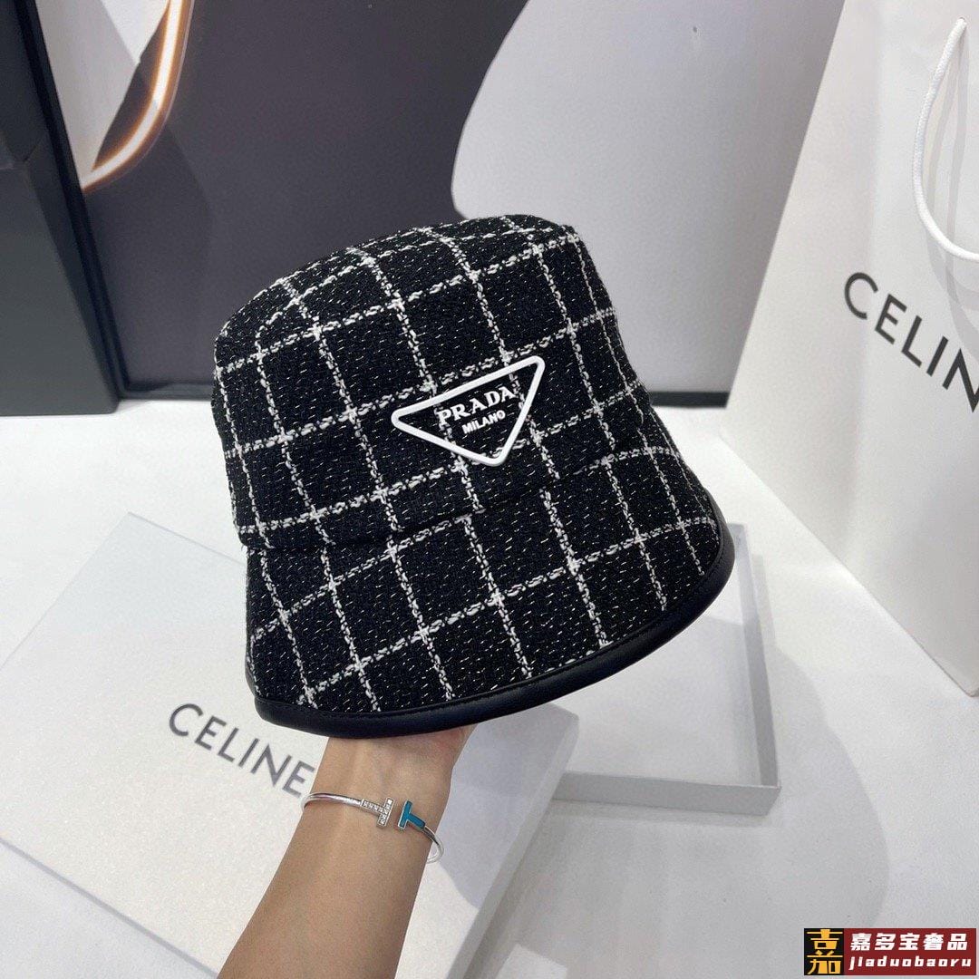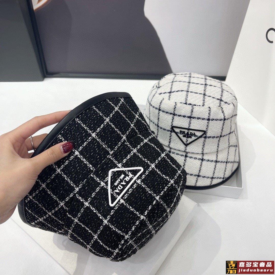 普拉达轻奢系列金线绣时尚格纹皮边渔夫帽大牌既视感超级洋气 <