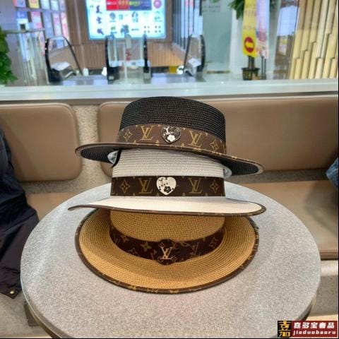 路易威登早春新款韩版皮包边草帽官网正品原单平顶草帽跑量款哦出