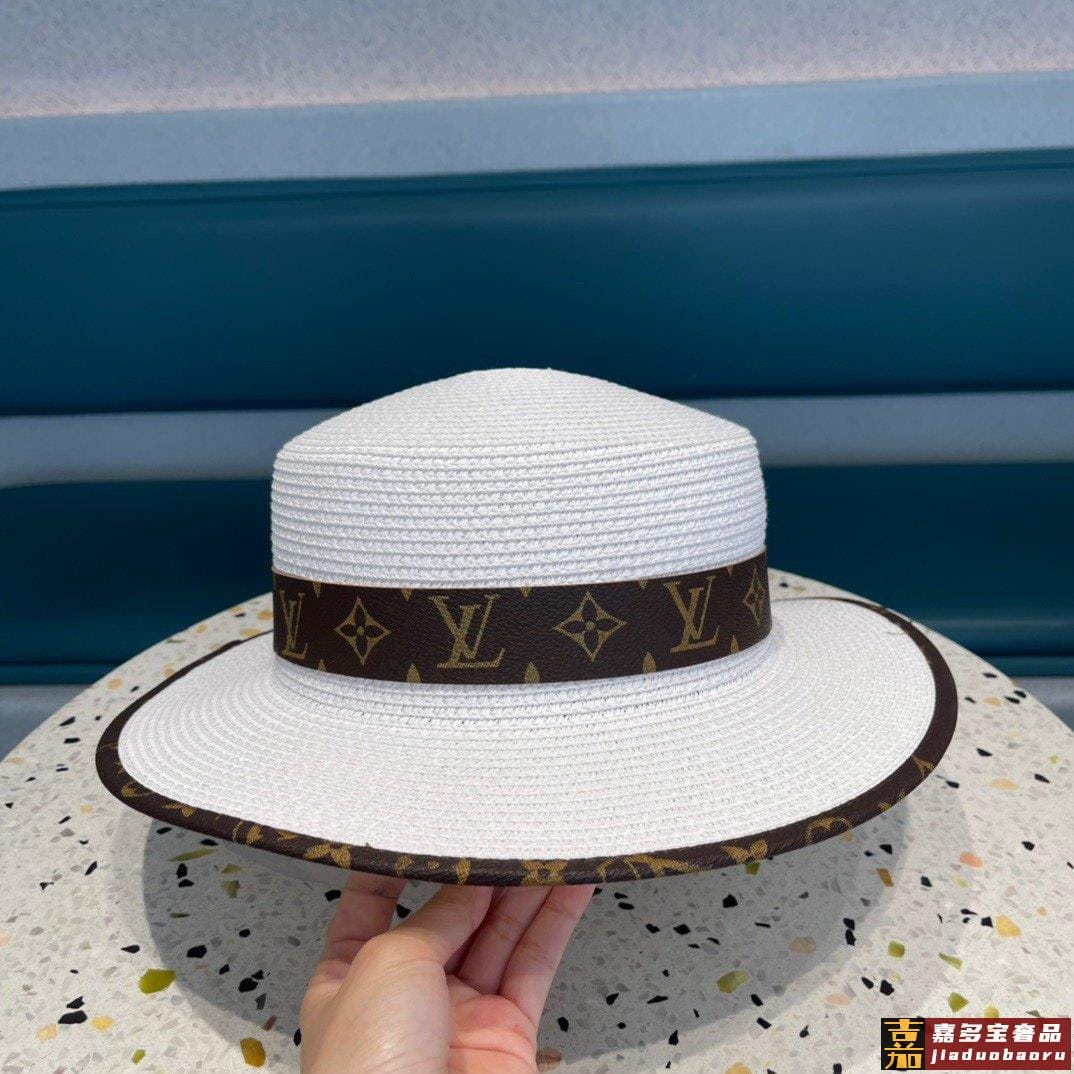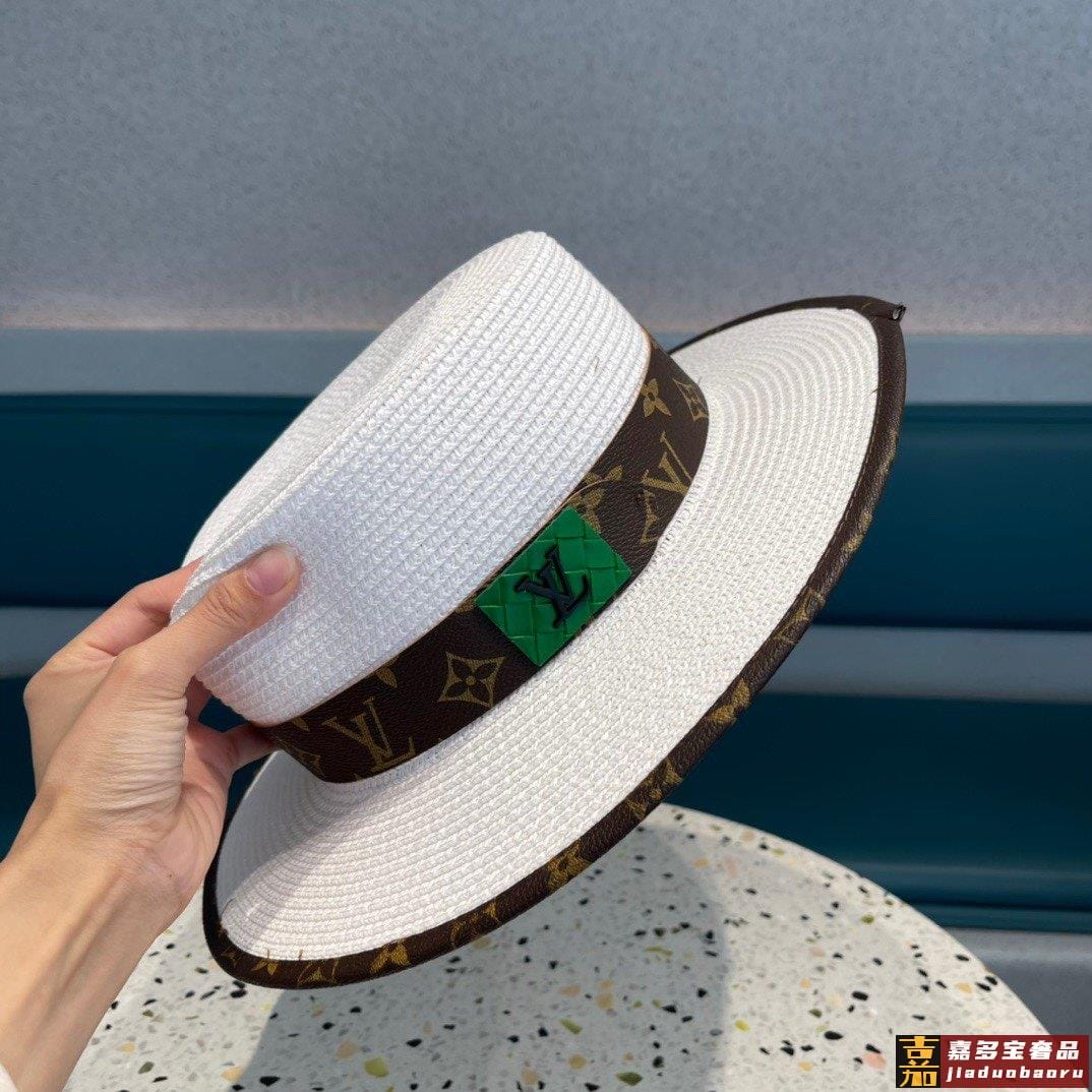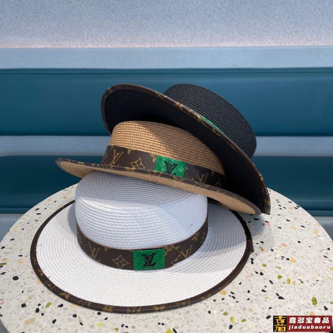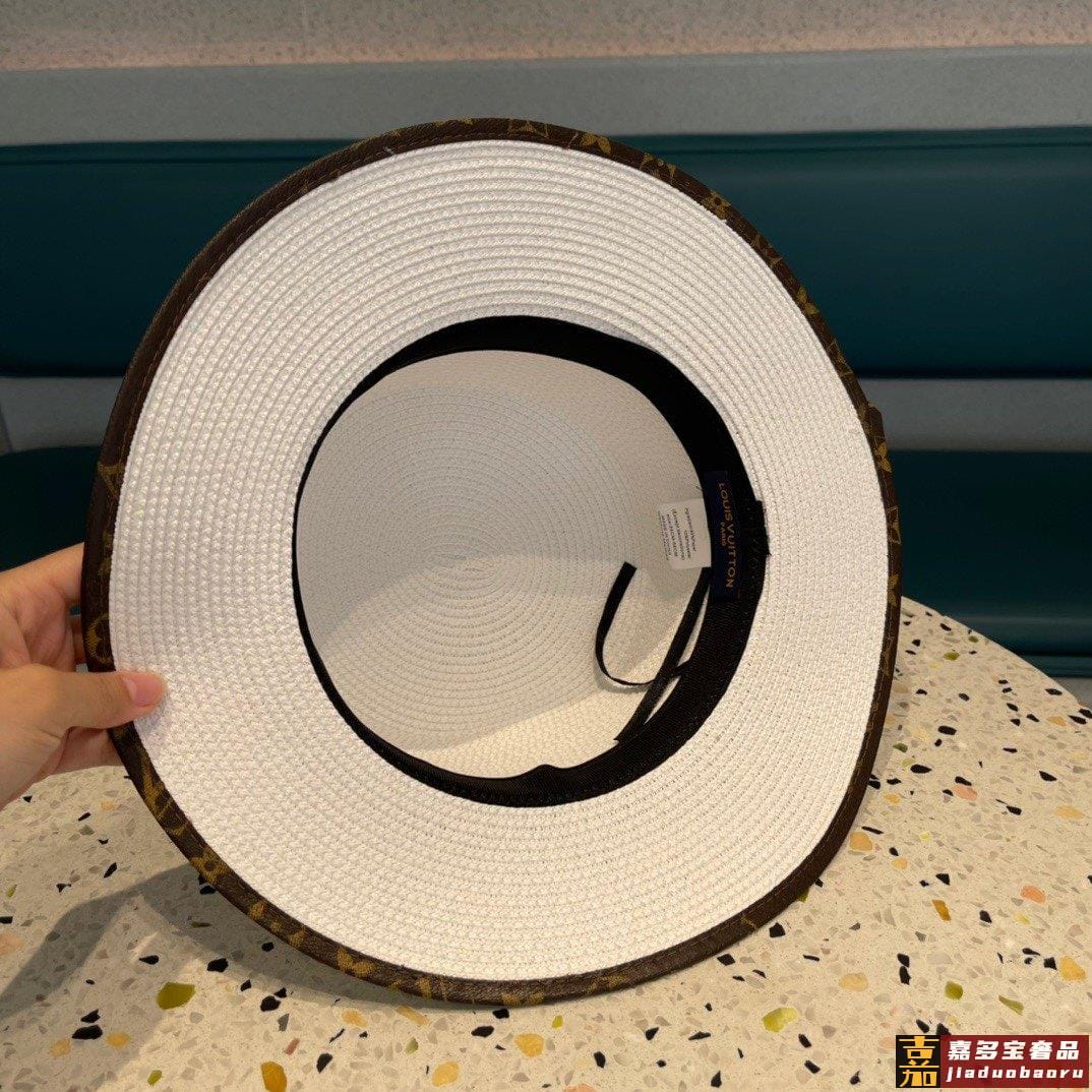 路易威登早春新款韩版皮包边草帽官网正品原单平顶草帽跑量款哦出