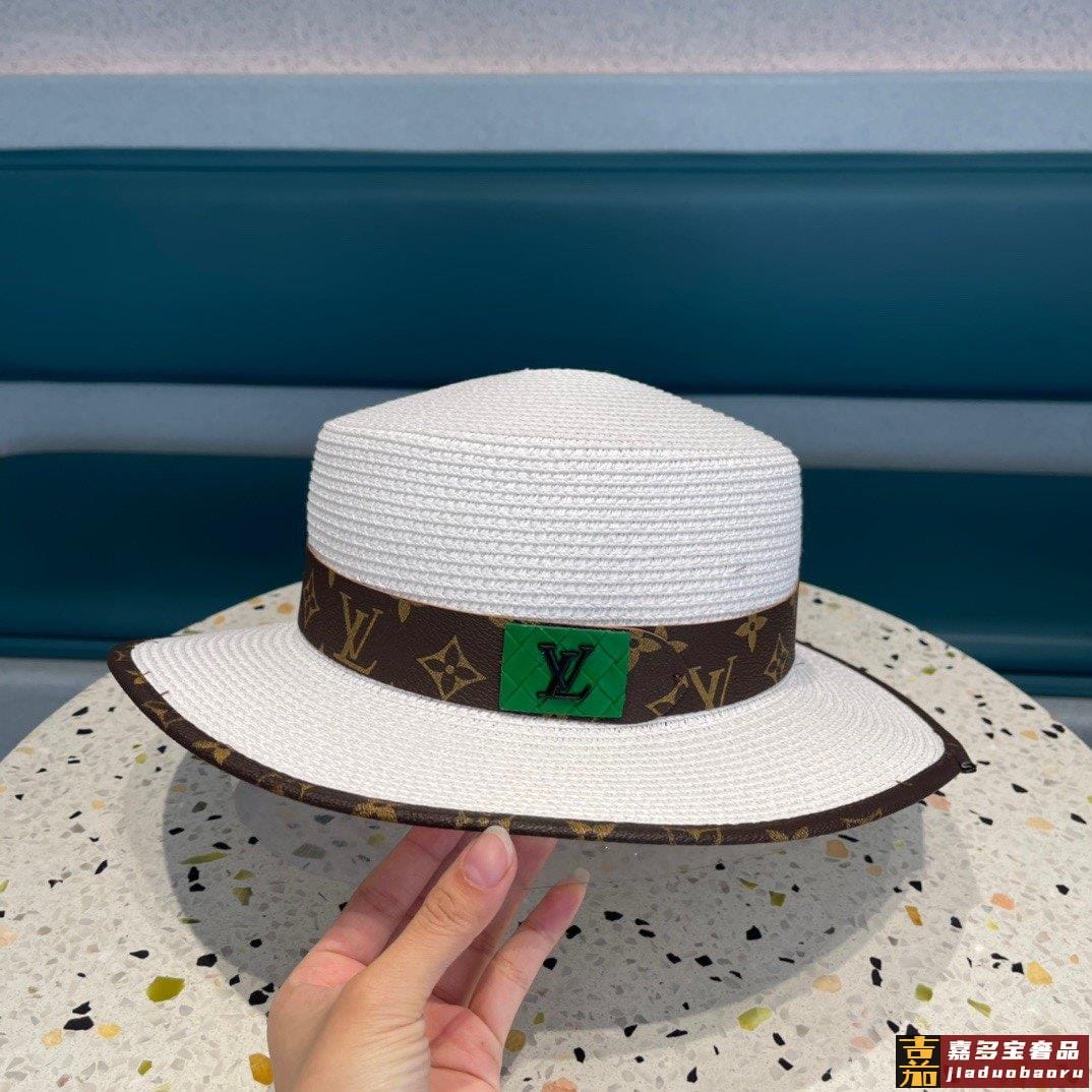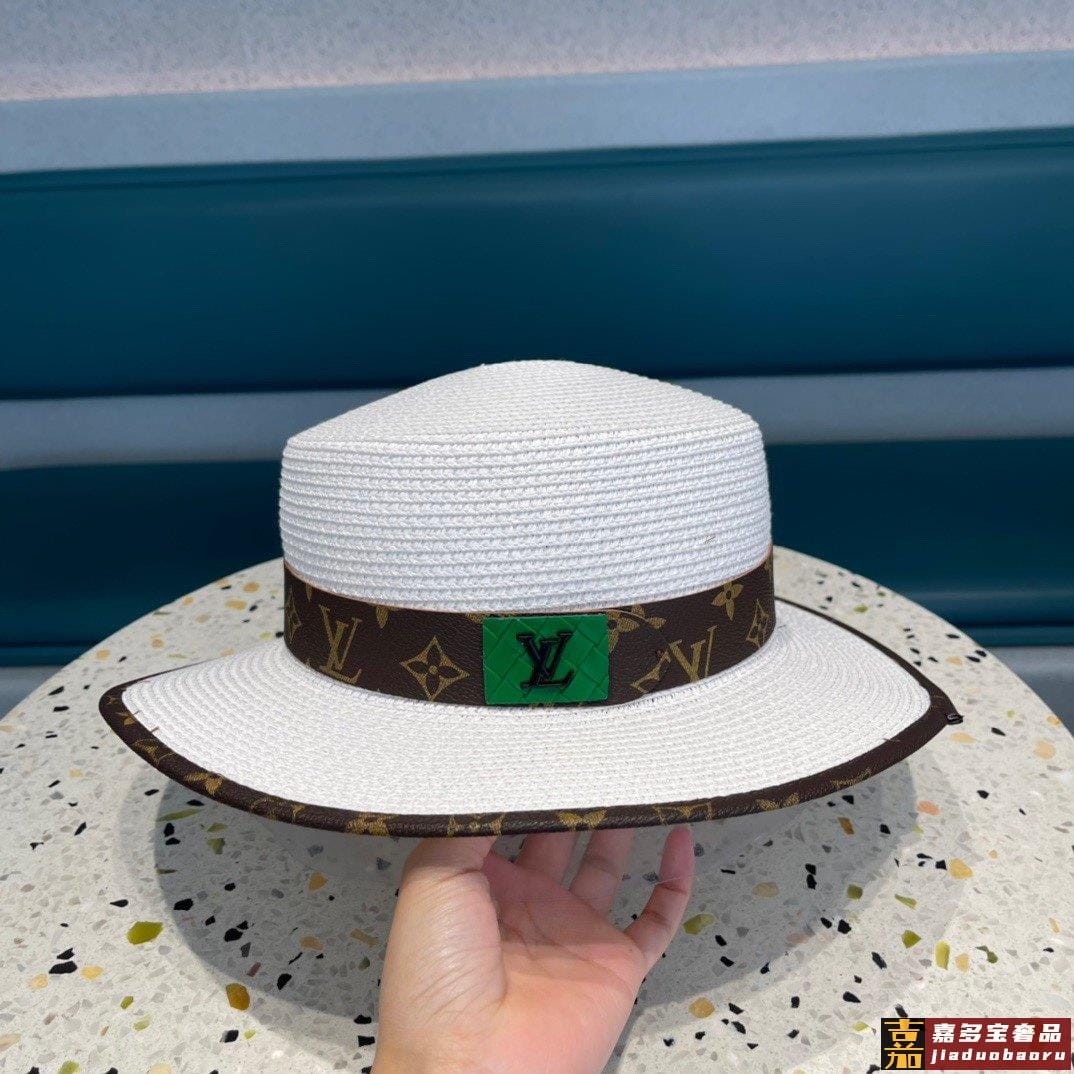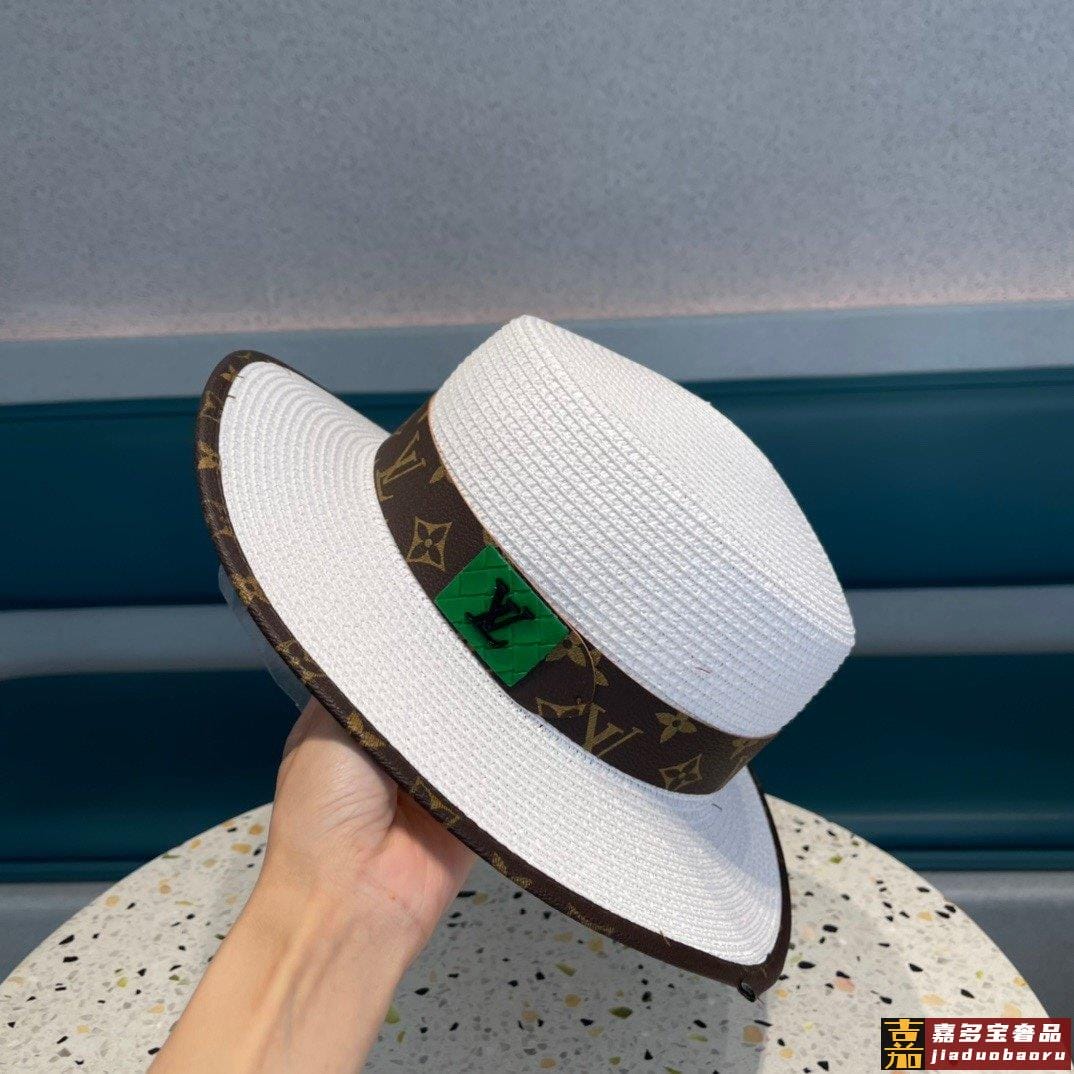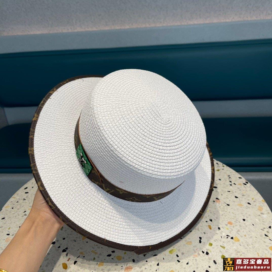 路易威登早春新款韩版皮包边草帽官网正品原单平顶草帽跑量款哦出