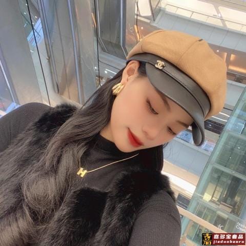 香奈儿新款丝绒拼皮鸭舌军帽八角帽南瓜帽高端网红款可盐可甜头围