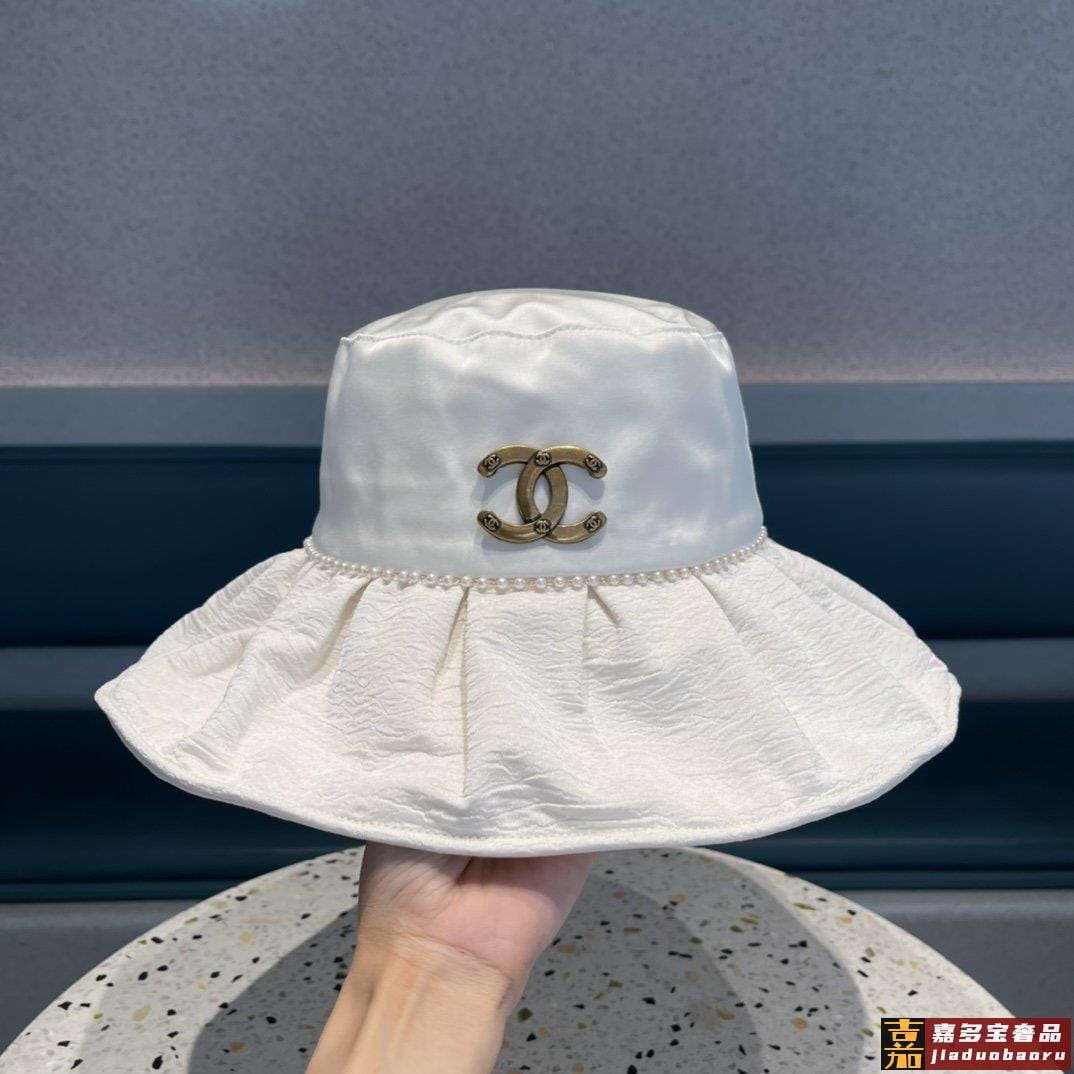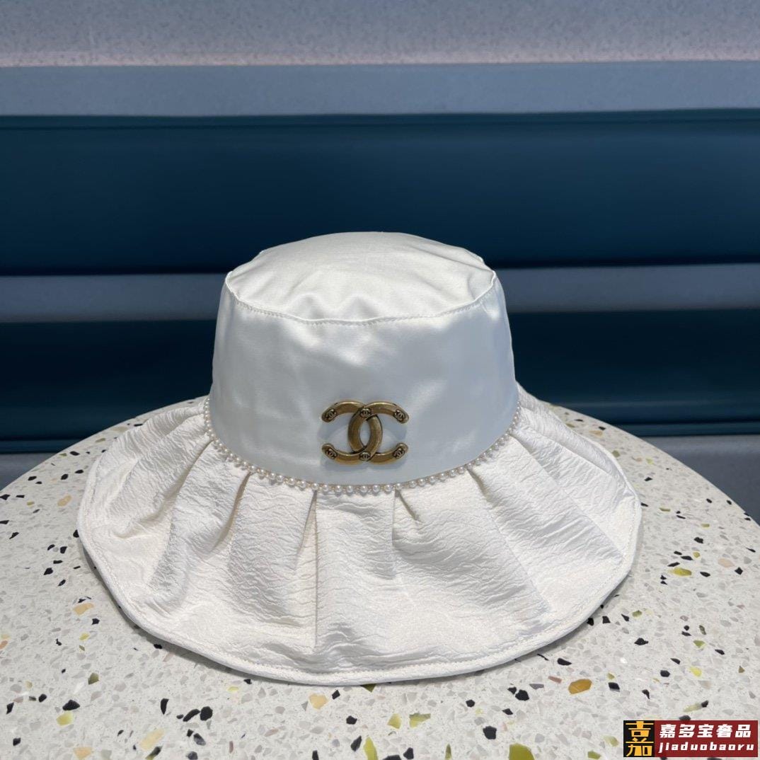 香奈儿新款渔夫帽夏款渔夫帽珍珠配饰网状风格独特设计头围