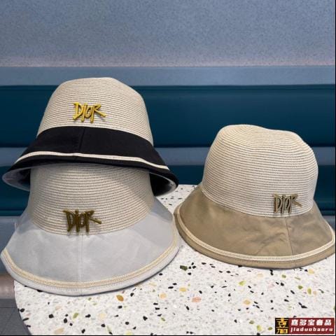 迪奥新款拼接草编遮阳草帽盆帽沙滩风简约大方百搭单品出街首选新