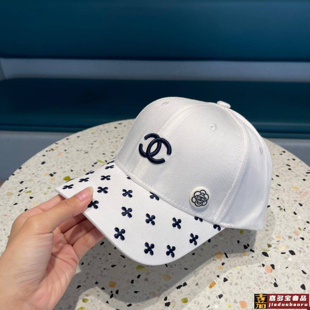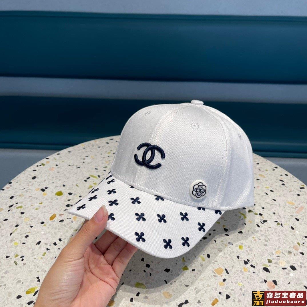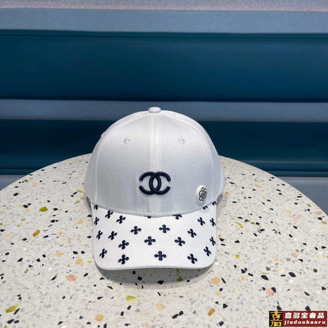 香奈儿新款山茶花棒球帽刺绣鸭舌帽黑白米三色头围