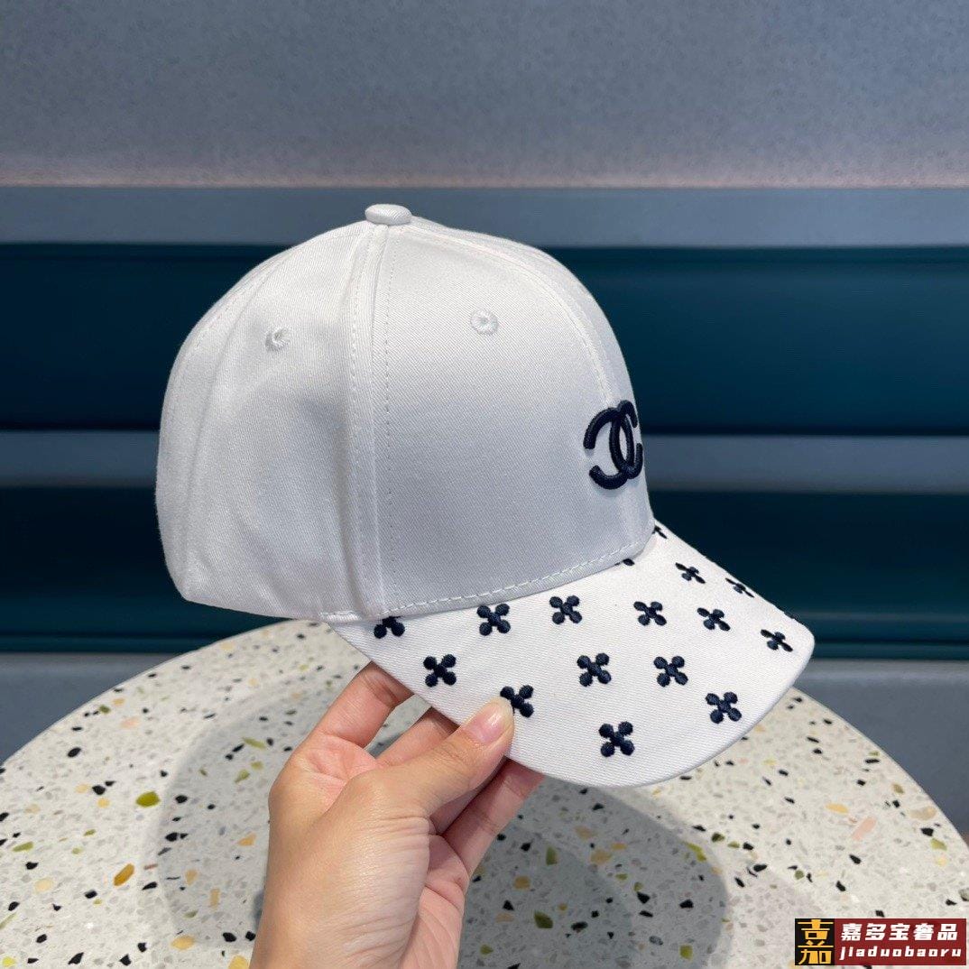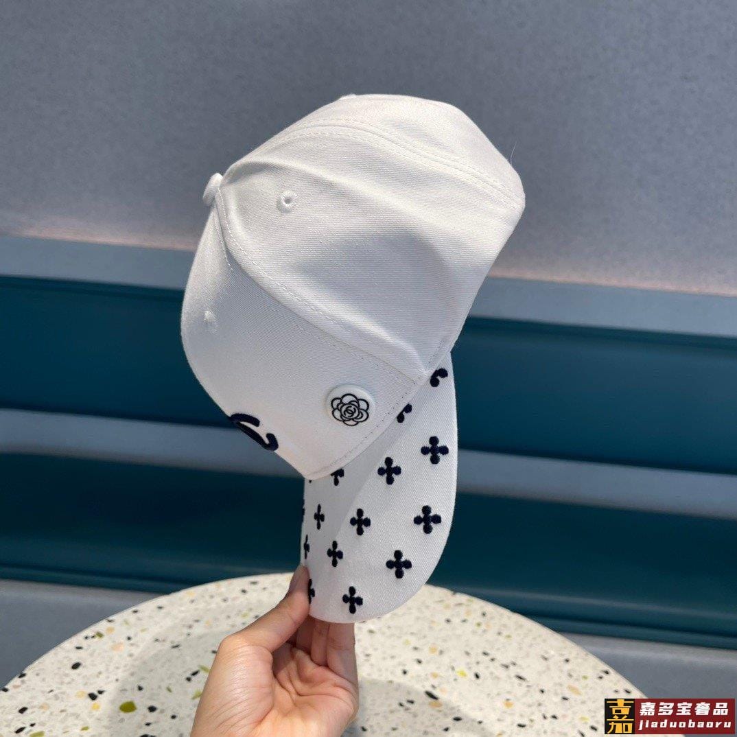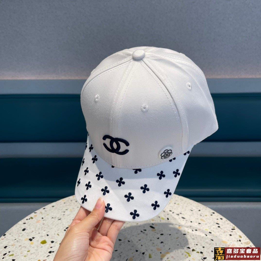 香奈儿新款山茶花棒球帽刺绣鸭舌帽黑白米三色头围