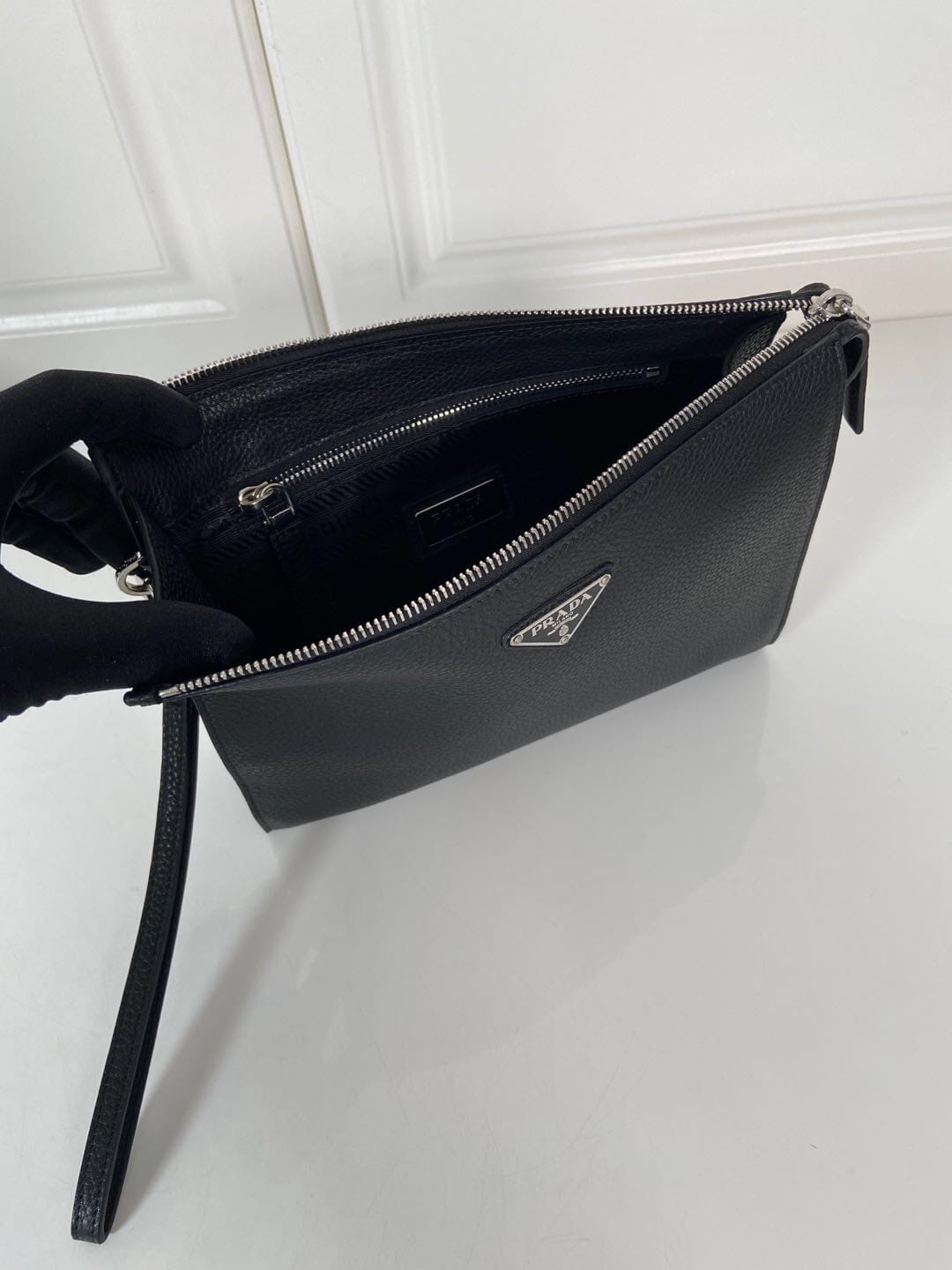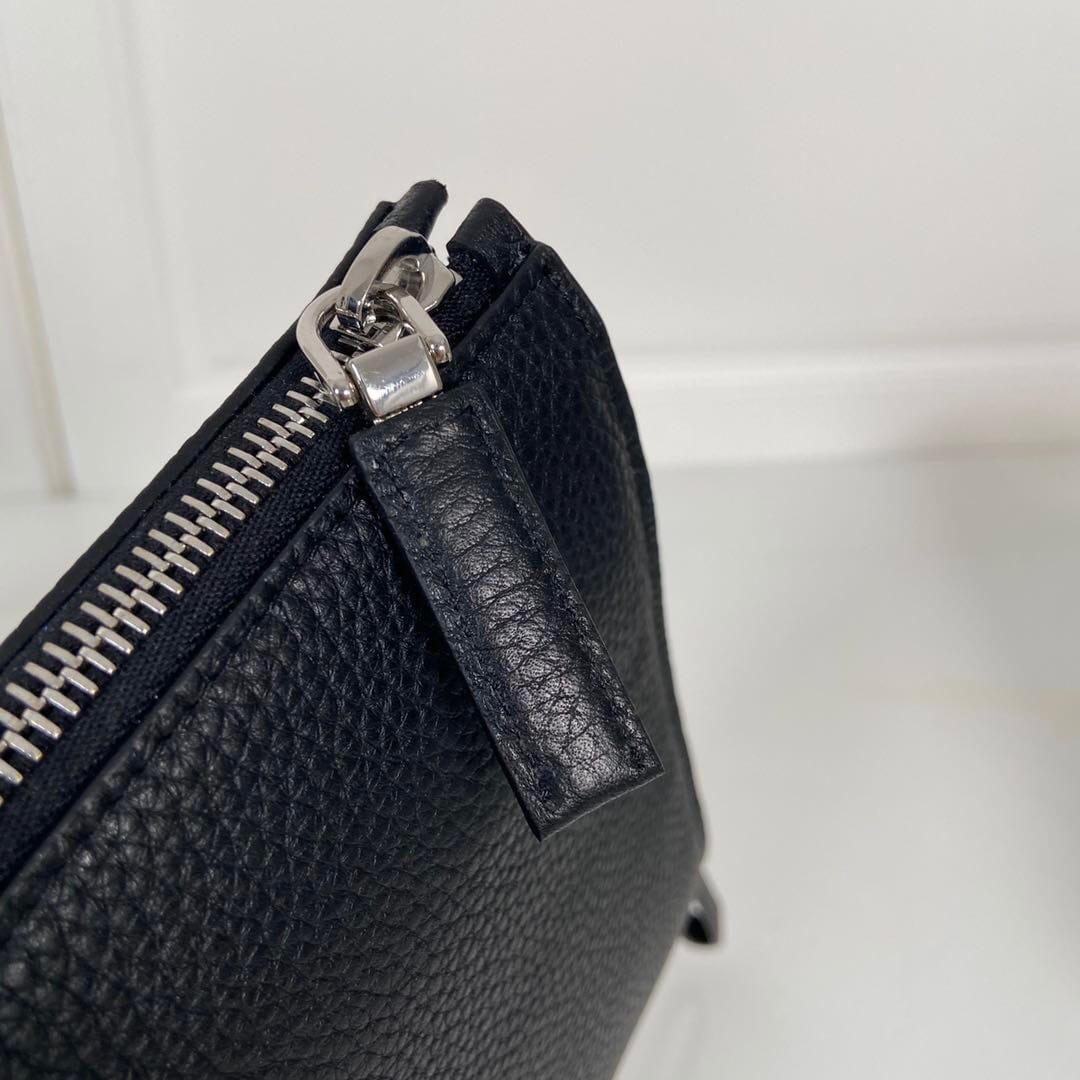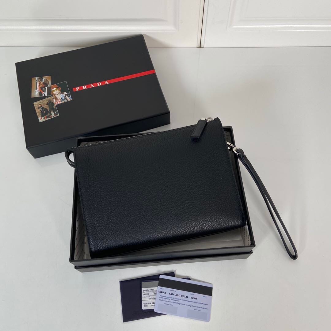 P家??男士手包,黑色,型号2NE009,银色三角麦,顶级鹿皮+白钢五金,顶级元单品质,尺寸:长24×高18×宽6.5cm