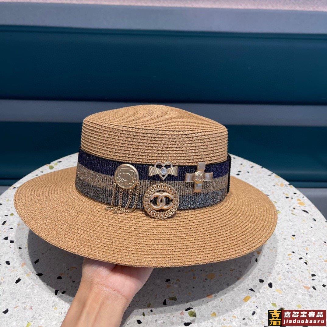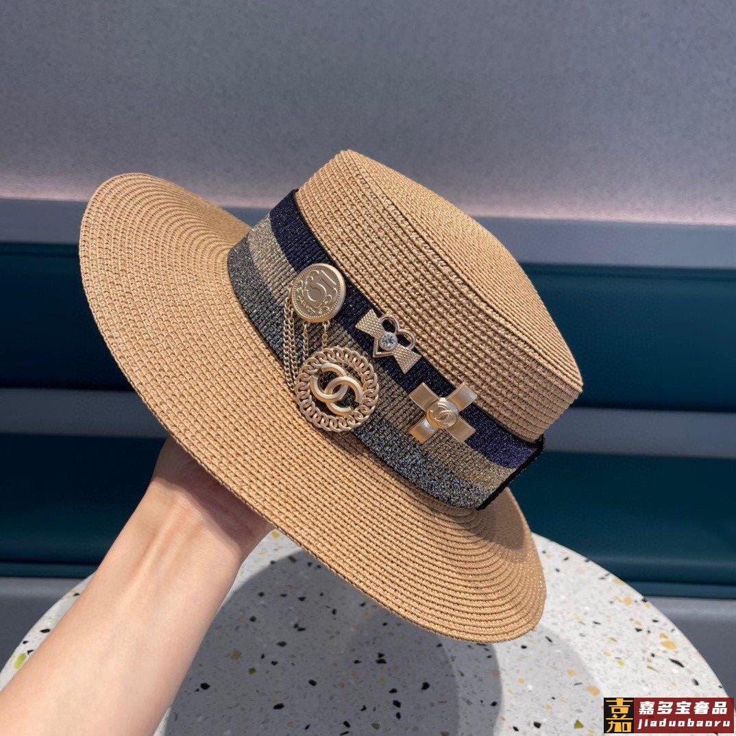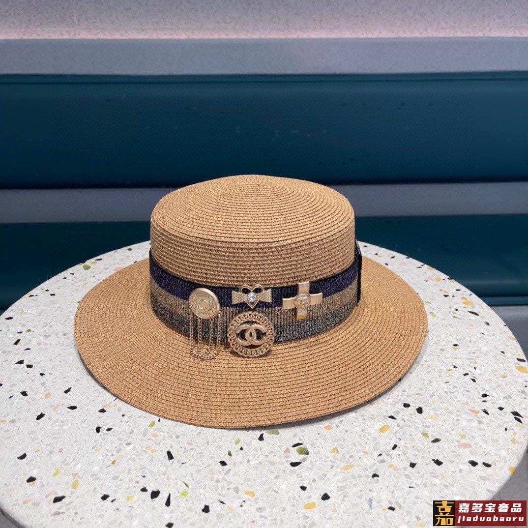 香奈儿新款小香组合草编草帽礼帽细节控简约大方百搭单品出街首选